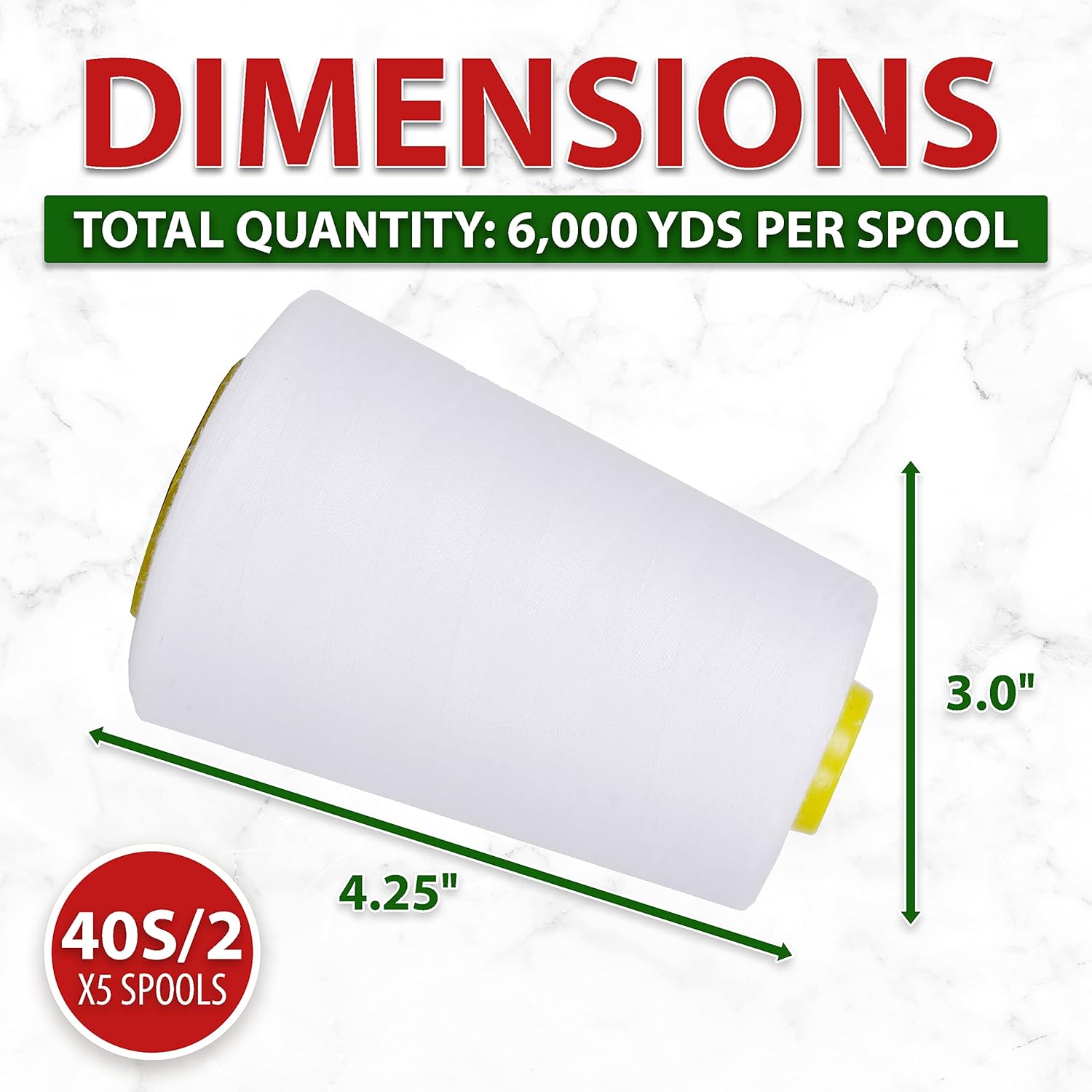 - Bulk Black White Polyester Serger Spools Thread Sewing Supplies Kit: Each 4.25 x 3 x 3 in cone of thread is 6000 yards long. The 40wt all-purpose sewing thread serve as heavy duty cone serger thread for sewing machine for both residential and commercial use.