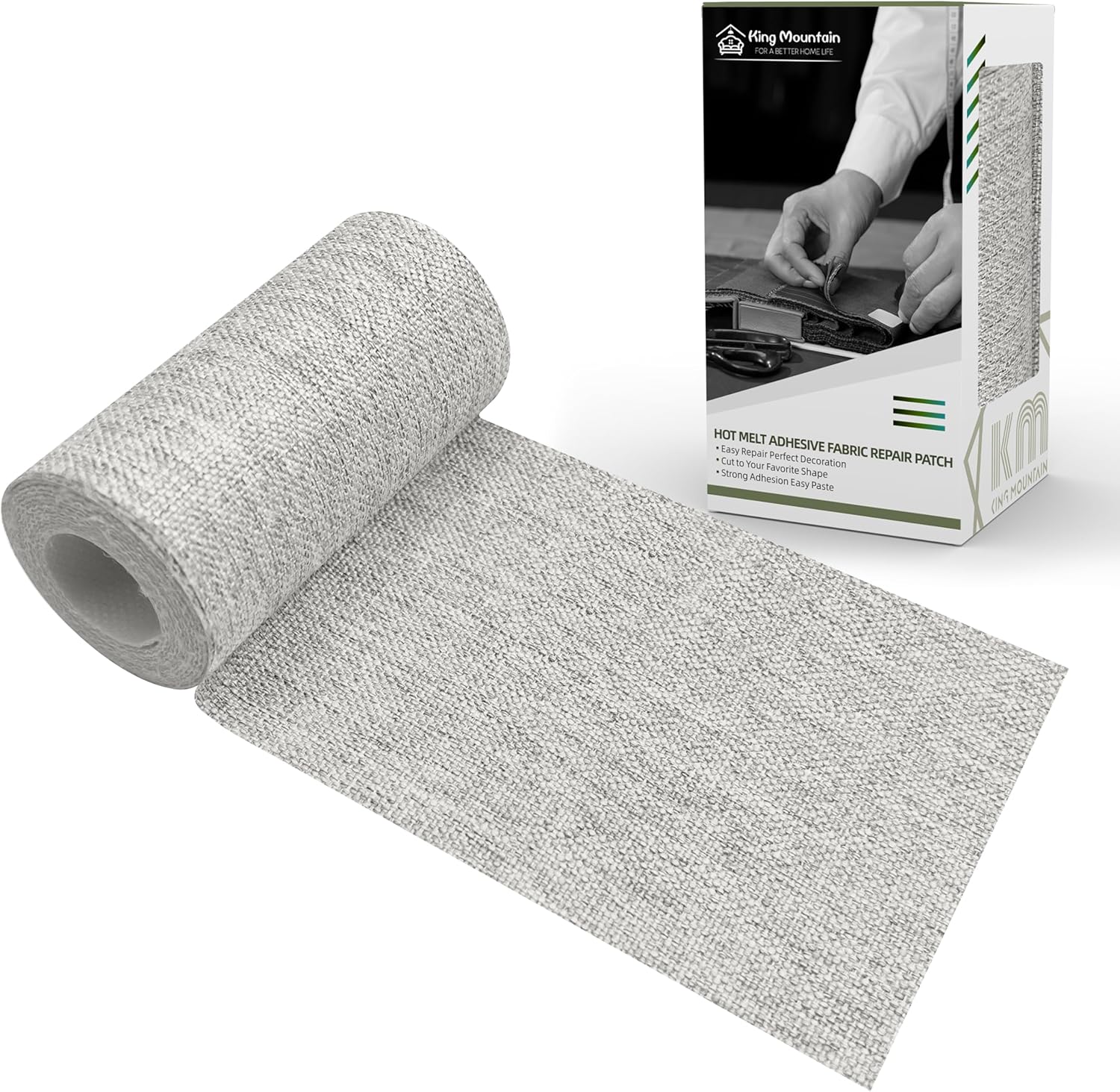 King Mountain Premium Linen Fabric Iron-on Repair Patch, Inside&Outside Fabric Repair Patch, 3"x60" with Backing Glue Linen Repair Decorative Patch kit (Linen-3"x60", Light Grey)