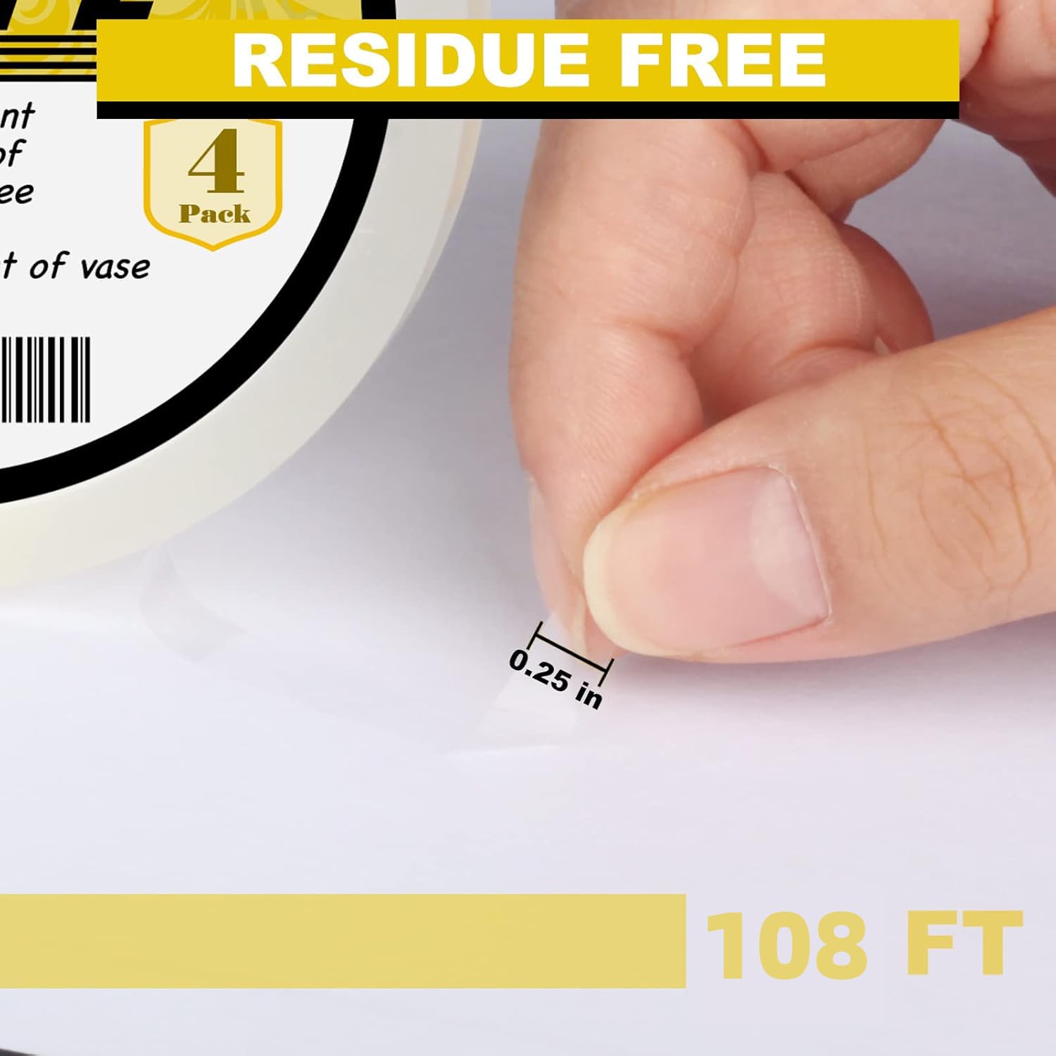 4Packs Clear Floral Tape - 1/4 inches Wide Floral Vase Tape, Clear Waterproof Floral Tape for Fresh Flower Bouquets and Flower Arrangements Crafts (0.25inch*4Packs), 0.25inch*4Pack