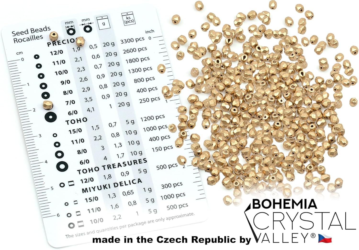 0.88oz (600+ pcs) Faceted Fire Polished Pressed Czech Glass Beads 3mm (0.12in), Aztec Pale Gold - 01710