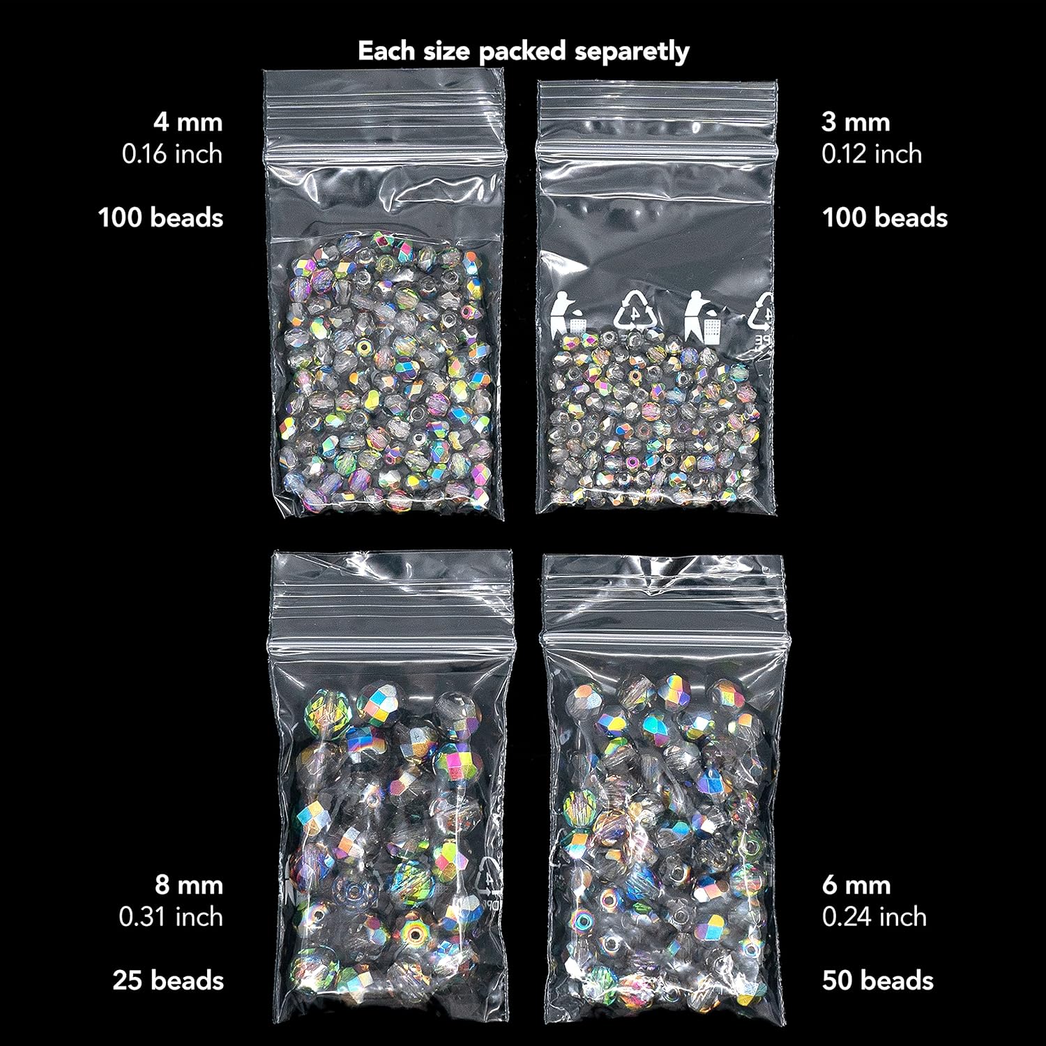 275 pcs Set of Czech Faceted Glass Beads, Fire-Polished Round Crystal Vitrail - 3mm (100pcs), 4mm (100pcs), 6mm (50pcs), 8mm (25pcs) kit for Jewelry Making