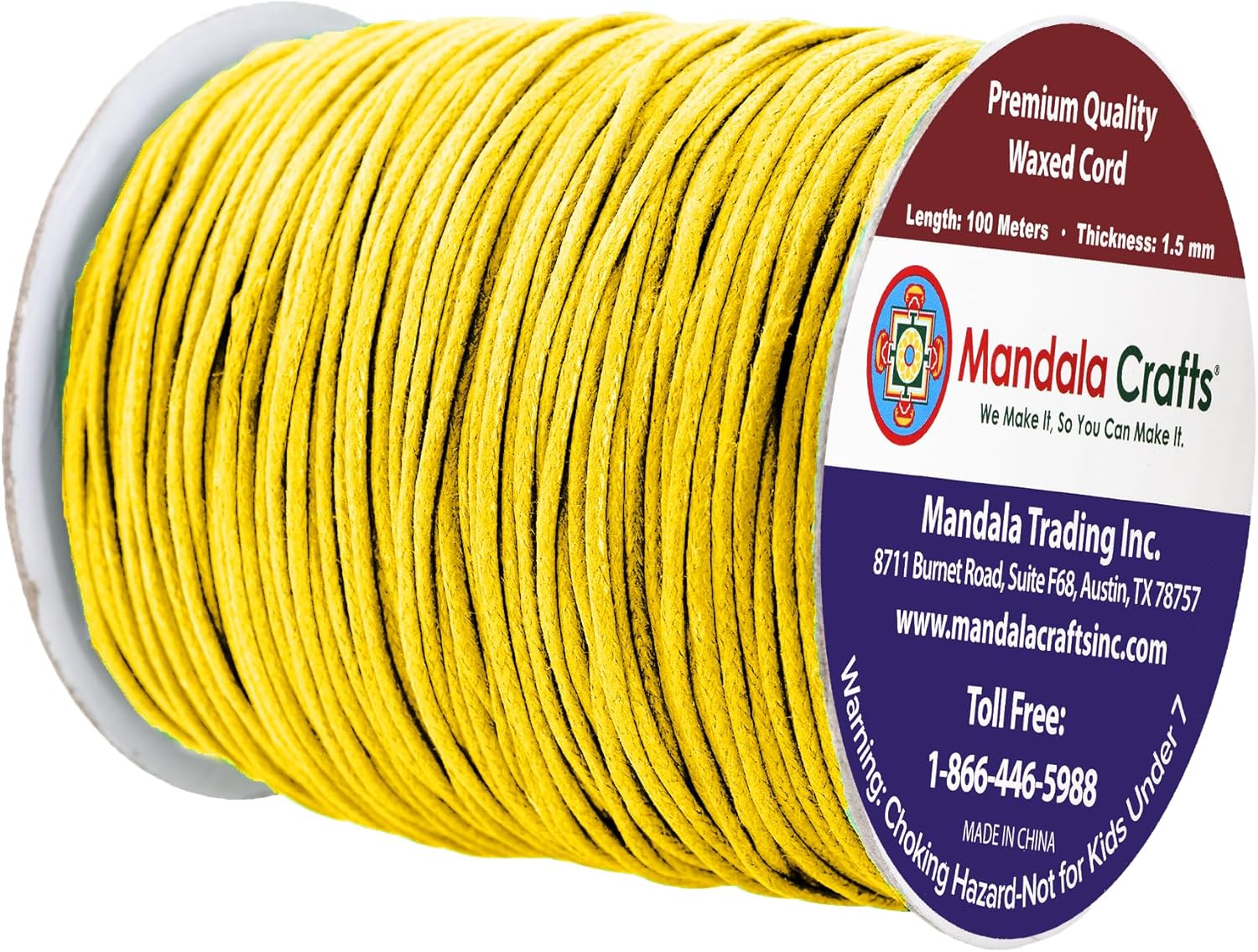 Mandala Crafts 1.5mm 109 Yards Yellow Cotton Waxed Cord for Jewelry Making Bracelet Cord Waxed String - Beading String Thread Jewelry Cords for Necklaces String