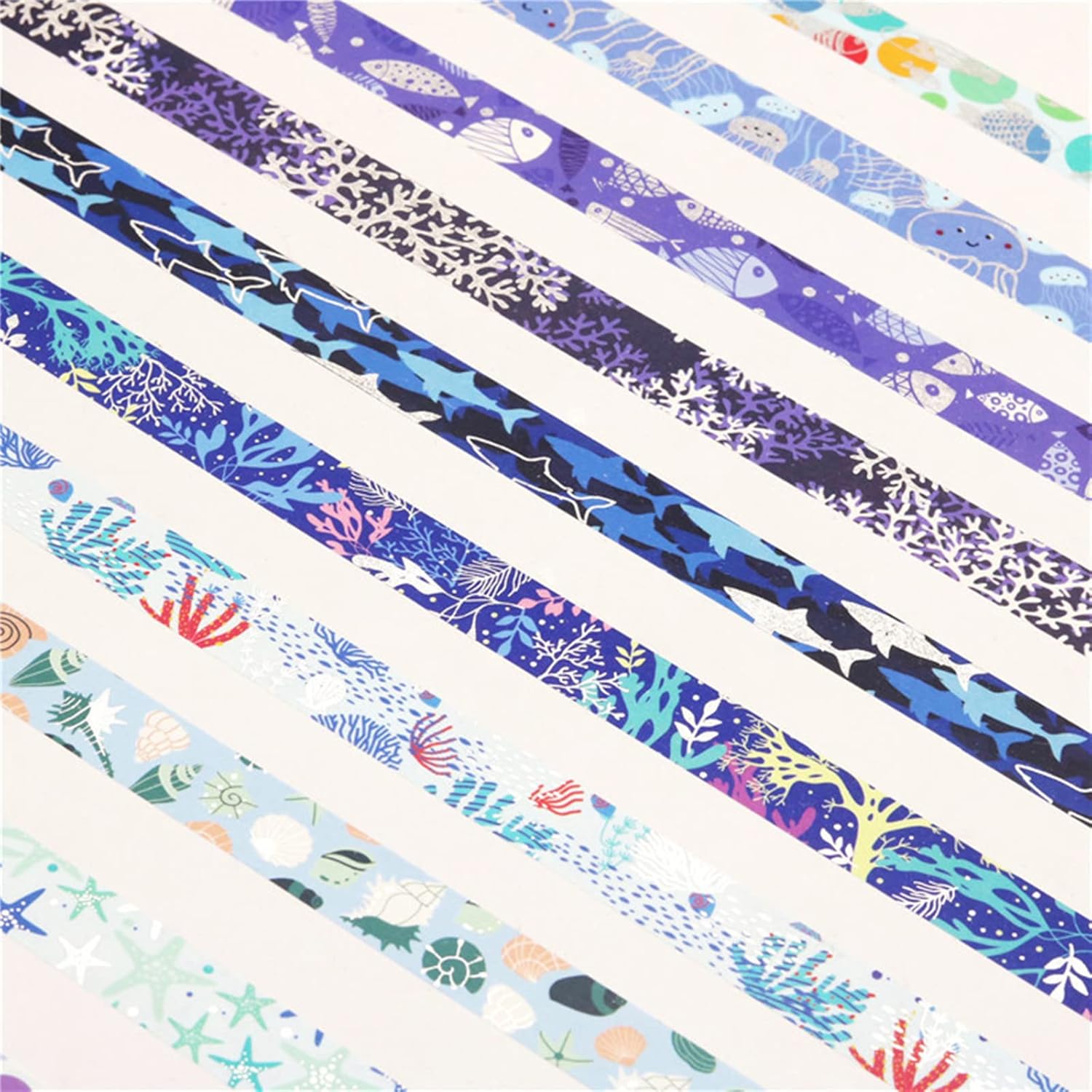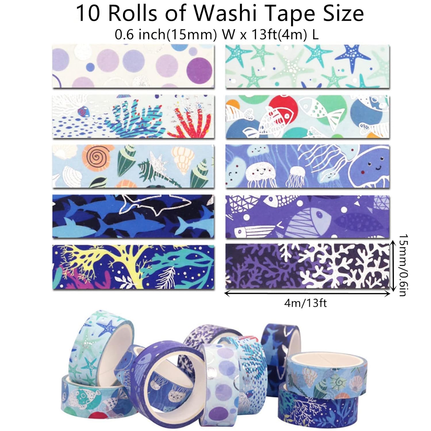 Blue Ocean Washi Tape Set 10 Rolls Bronzing Sea Decorative Masking Tapes for Scrapbooking, Bullet Journal, Planner, DIY Crafts, Gift Wrapping