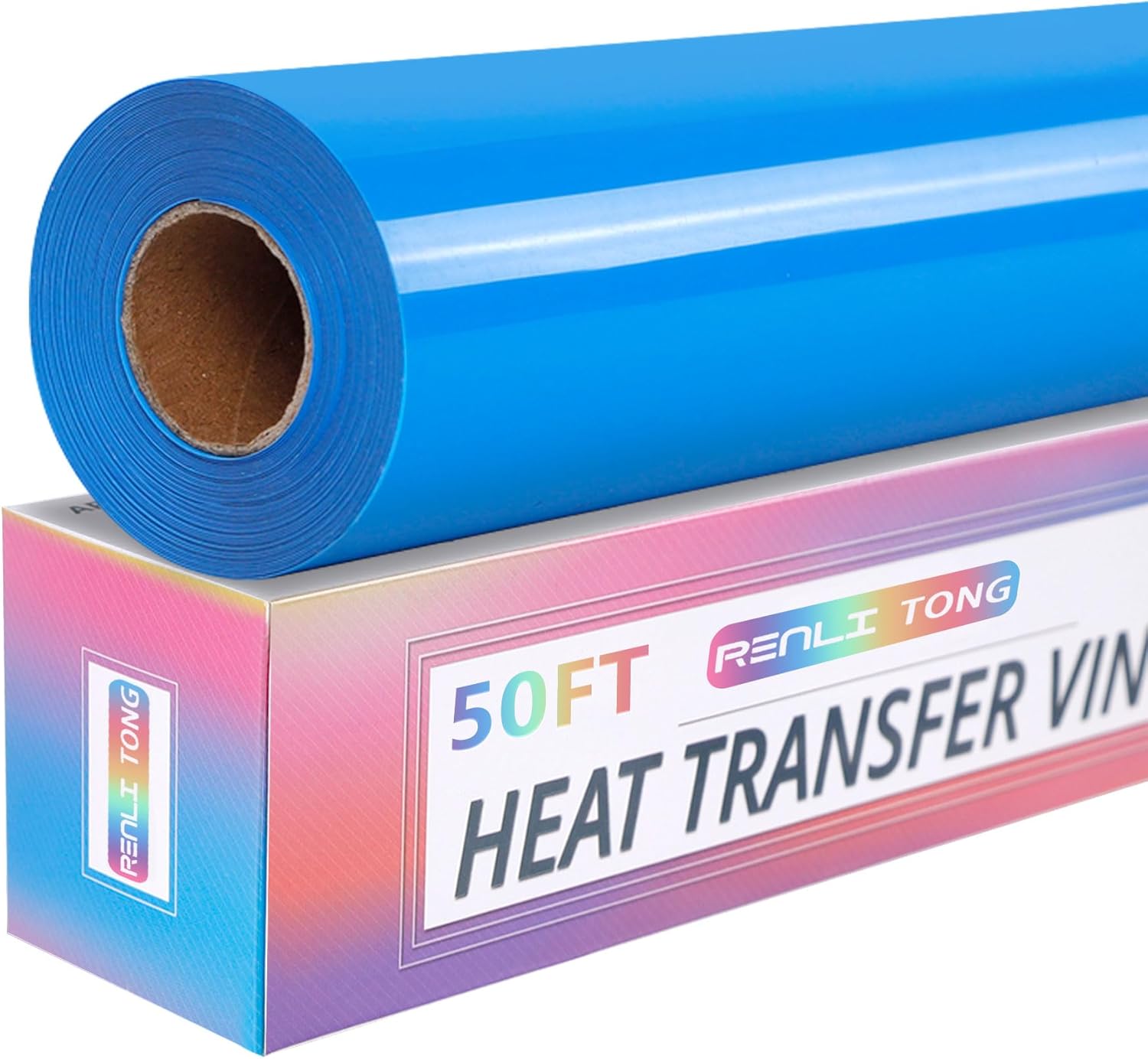 RENLITONG Lake Blue Iron on Vinyl 12Inch by 50ft Roll HTV Heat Transfer Vinyl for T-Shirt HTV Rolls for All Cutter Machine - Easy to Cut & Weed for Heat Transfer Design