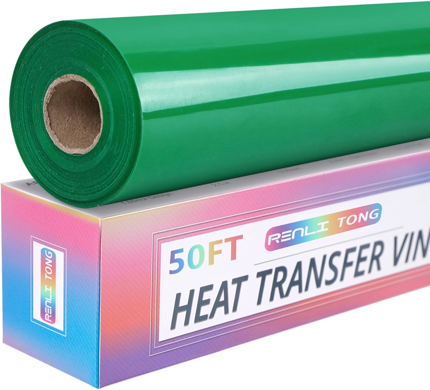 RENLITONG Green Iron on Vinyl 12Inch by 50ft Roll HTV Heat Transfer Vinyl for T-Shirt HTV Rolls for All Cutter Machine - Easy to Cut & Weed for Heat Transfer Design