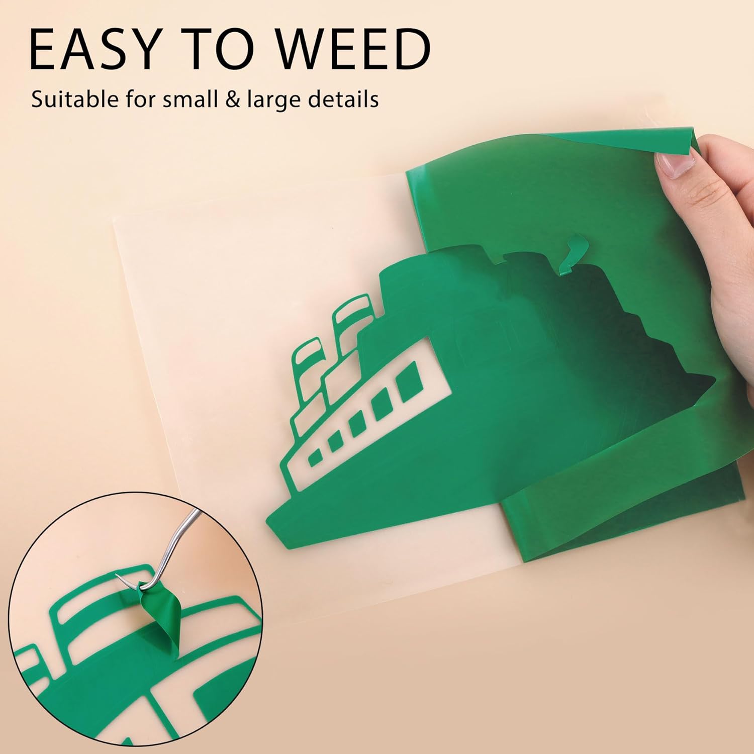 - ♻ EASY TO CUT & WEED & TRANSFER♻Our premium quality HTV Iron on Vinyl will save your time which you may waste on each image or letter, because you can cut and weed easily through the designs just right.The iron on vinyl is sensitive to temperature and pressure, which can be heat transferred on any t-shirt easily.