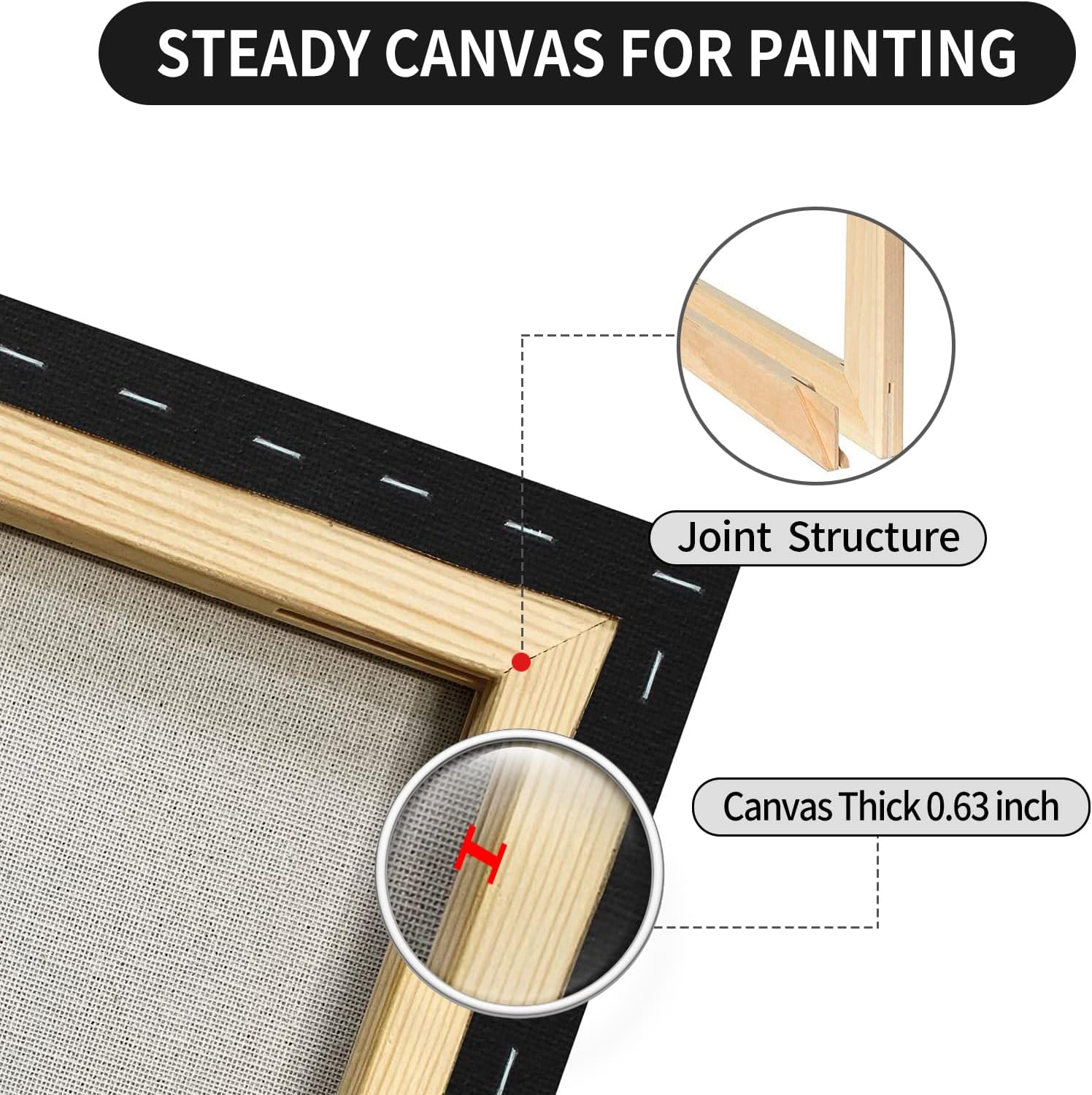 Black White Stretched Canvases for Painting Multi-Pack 3-Ea of11x14 8x10 5x7 Blank Painting Canvas 10OZ Gesso Fivefold Primed 100% Cotton Art Supplies for Acrylic Pouring Oil Paint Watercolor Tempera