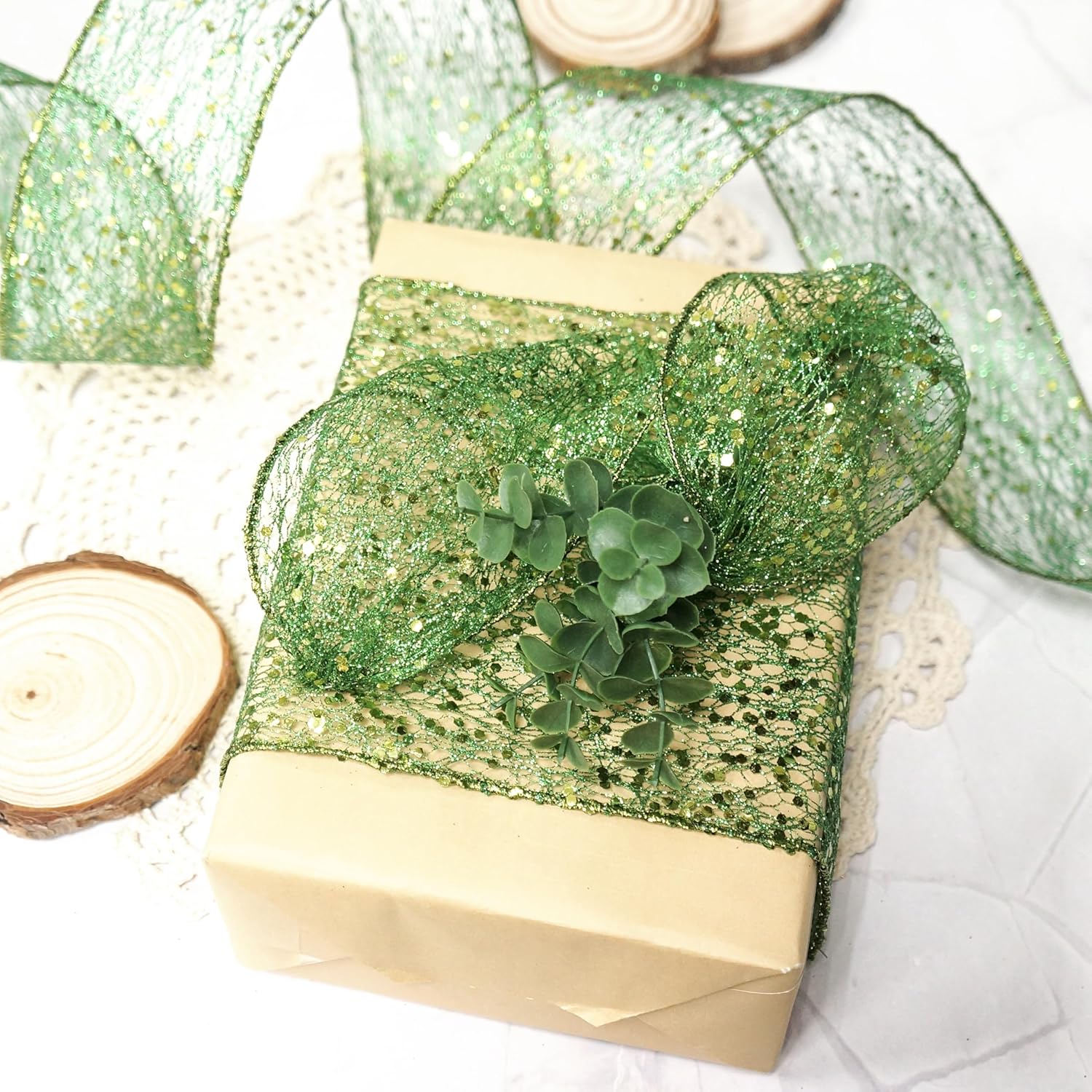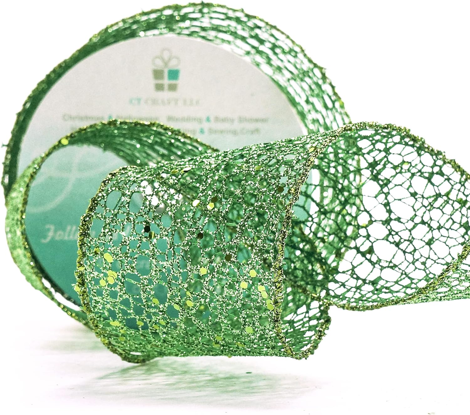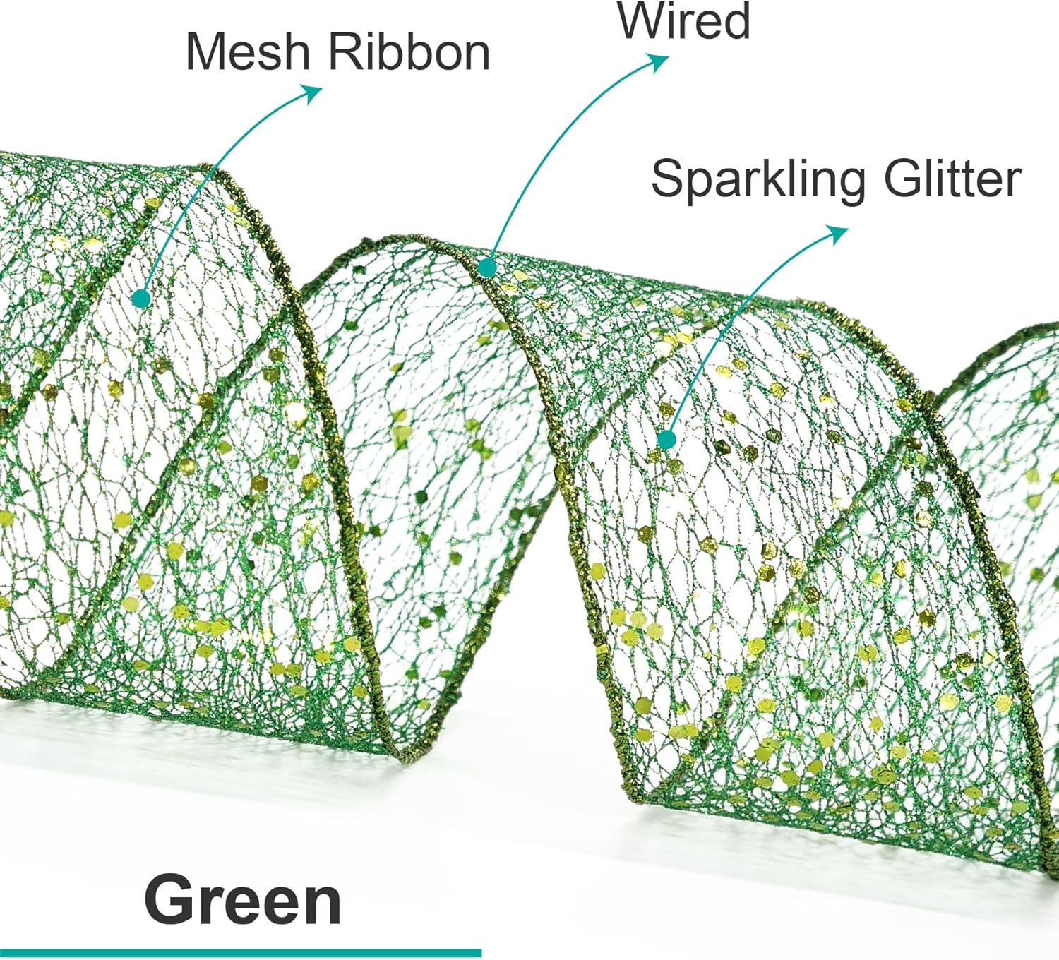 - A MUST-HAVE FOR DECORATION - Don't miss it if you're choosing a Sparkling Glitter Mesh Wired Ribbon 2.5" Green for your decoration! Our ribbon works perfectly for decorating and adding finishing touch to your craft projects. Simple and elegant.