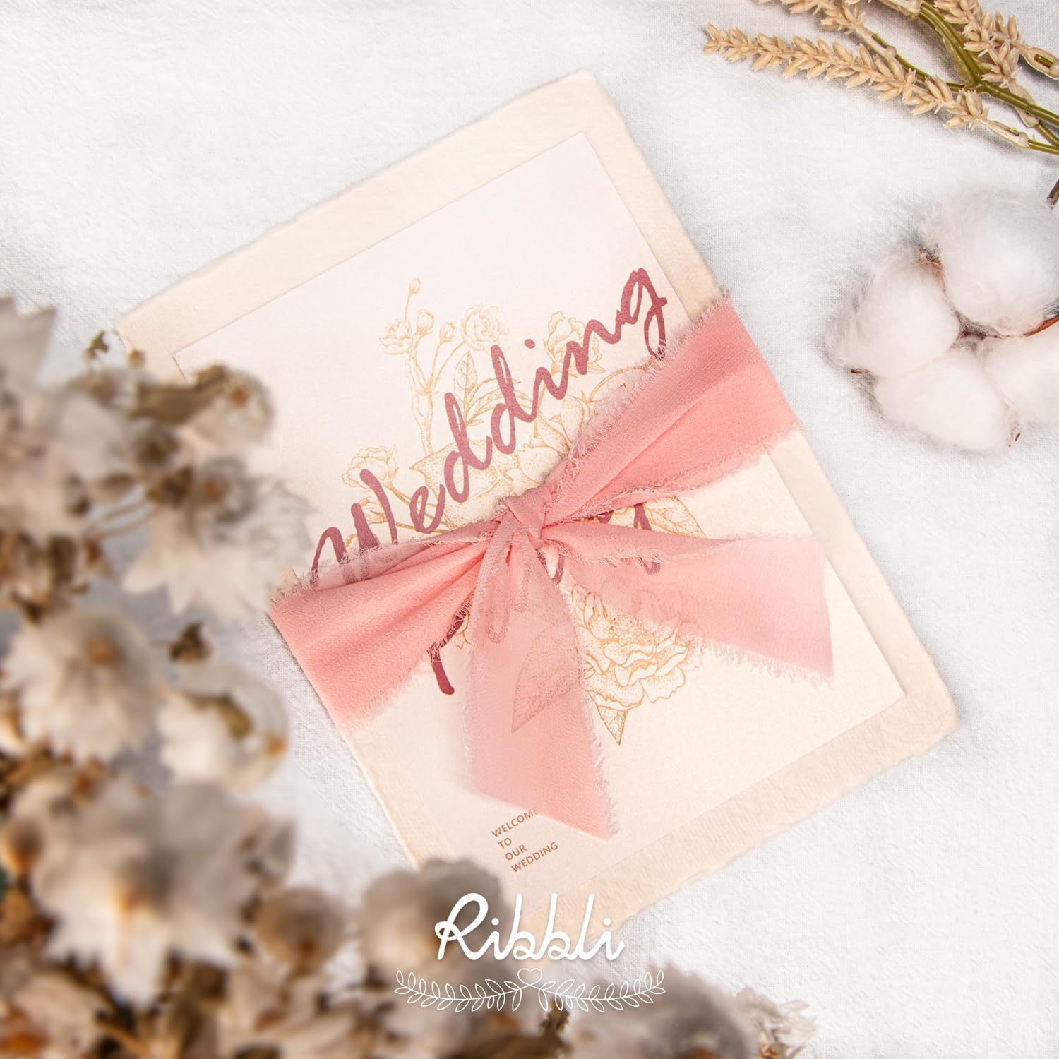Ribbli Light Pink Chiffon Ribbon 1-1/2 inch x 20 Yard Handmade Fringe Chiffon Silk Ribbon for Wedding Invitations, Bridal Bouquets Wrapping, Flower Arrangement Decoration