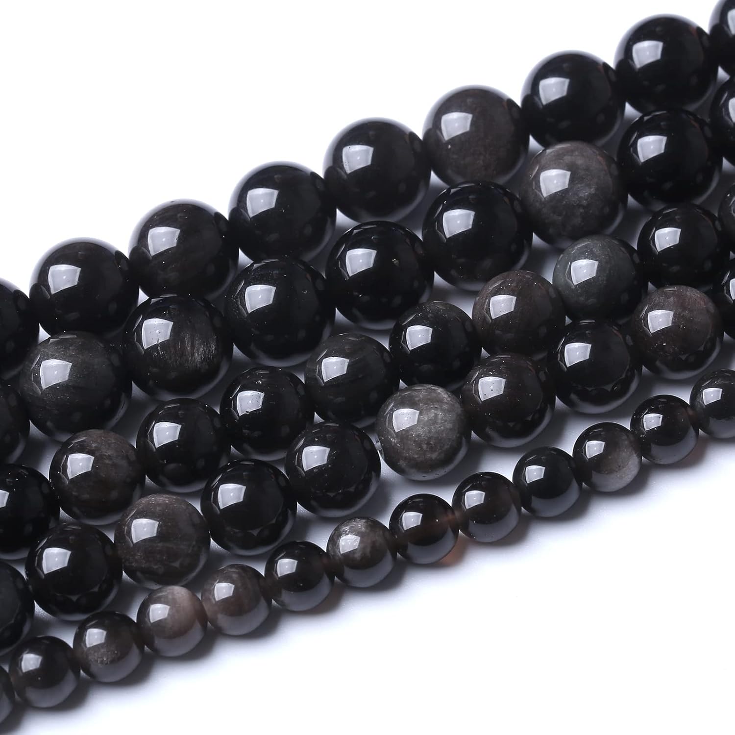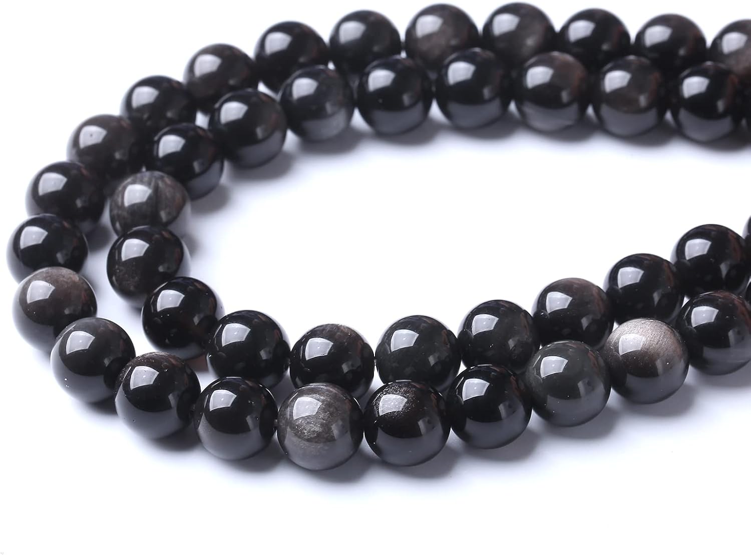 60pcs 6mm AAA Natural Obsidian Stone Beads Gemstone Round Loose Beads for Jewelry Making DIY Bracelet (Sliver Color Obsidian Stone, 6mm)