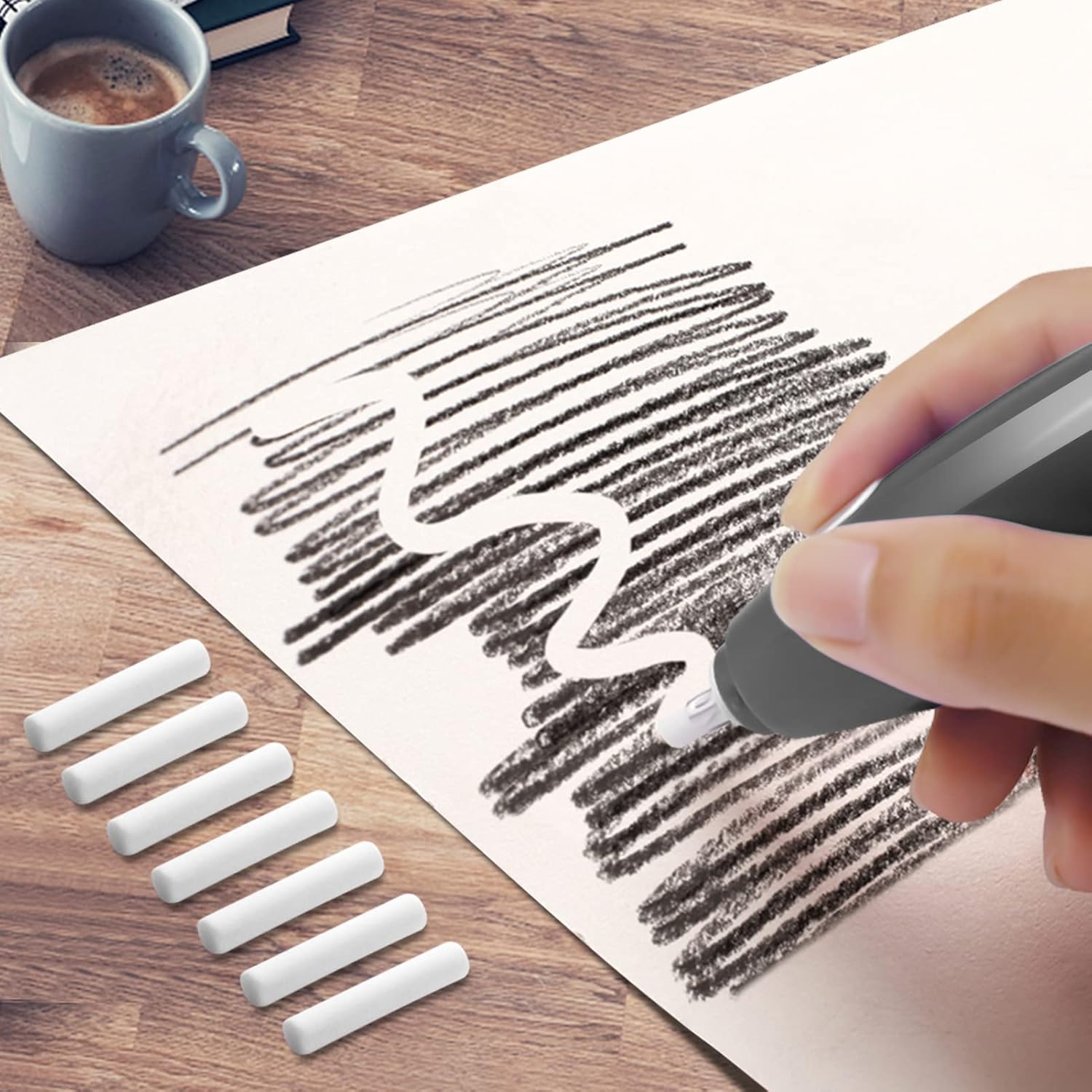 - Electric Eraser Kit with 2 Eraser Sizes: Our electric eraser includes 2 eraser holders to hold both Ο2.3mm and Ο5mm erasers. Use the bigger one to create thick highlights and the smaller one to erase tiny parts like hair. Ideal for artists and professionals. The electric eraser kit comes with 1 USB Cable, 40 big refills, 100 small refills and 1 brush. Besides, there are 3 pack of spare rubber holders.