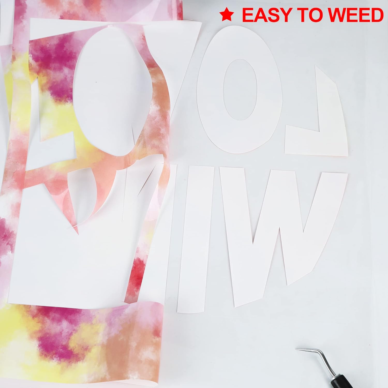 - ♻ EASY TO CUT & WEED & TRANSFER♻Our premium quality heat transfer vinyl will save your time which you may waste on each image or letter, because you can cut and weed easily through the designs just right.The iron on vinyl is sensitive to temperature and pressure, which can be heat transferred on any t-shirt easily.