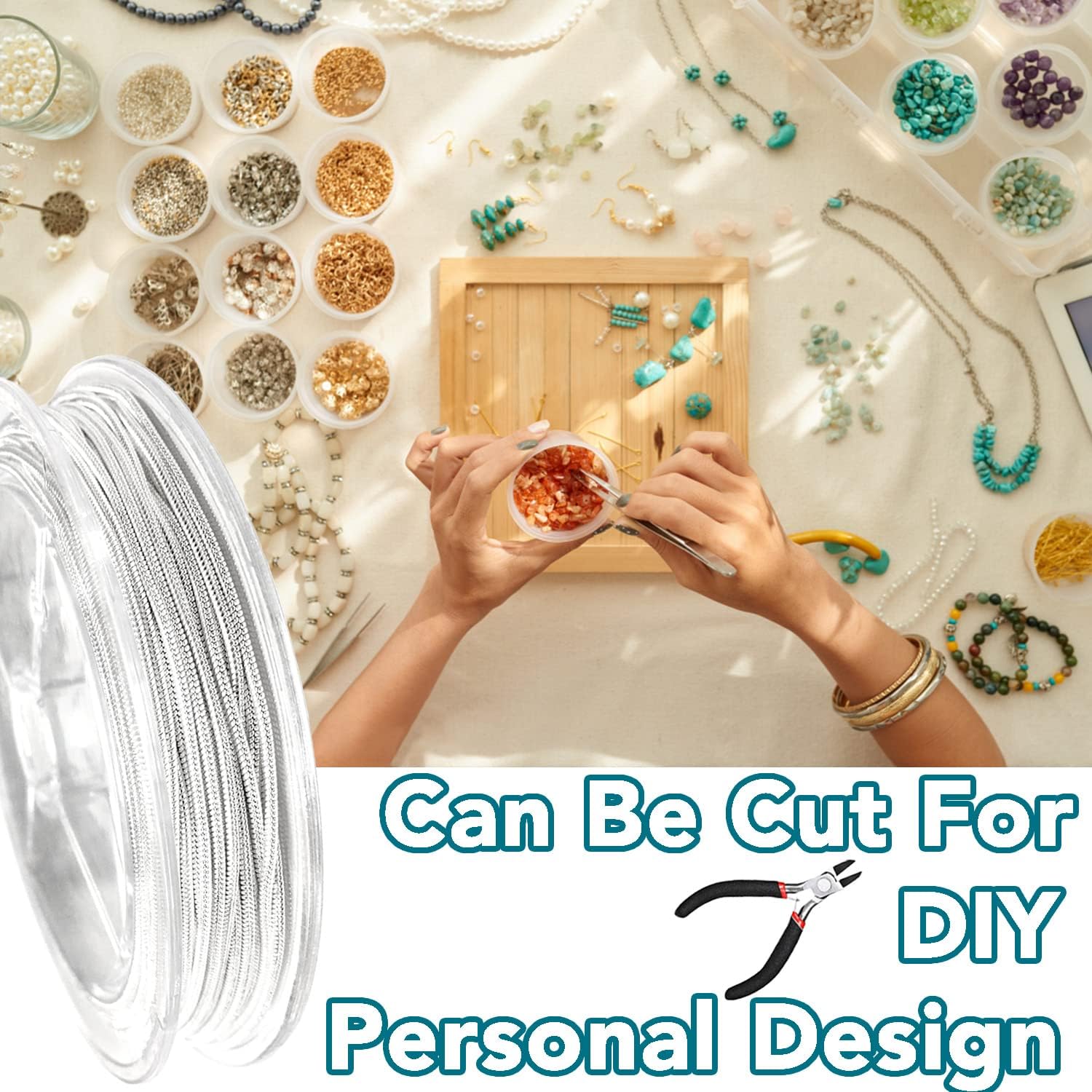 - EASY TO USE & STORE: The silver snake chain for jewelry making is rolled up on a reel to prevent knotting and easy to use, just roll it back to the spool when not in use.