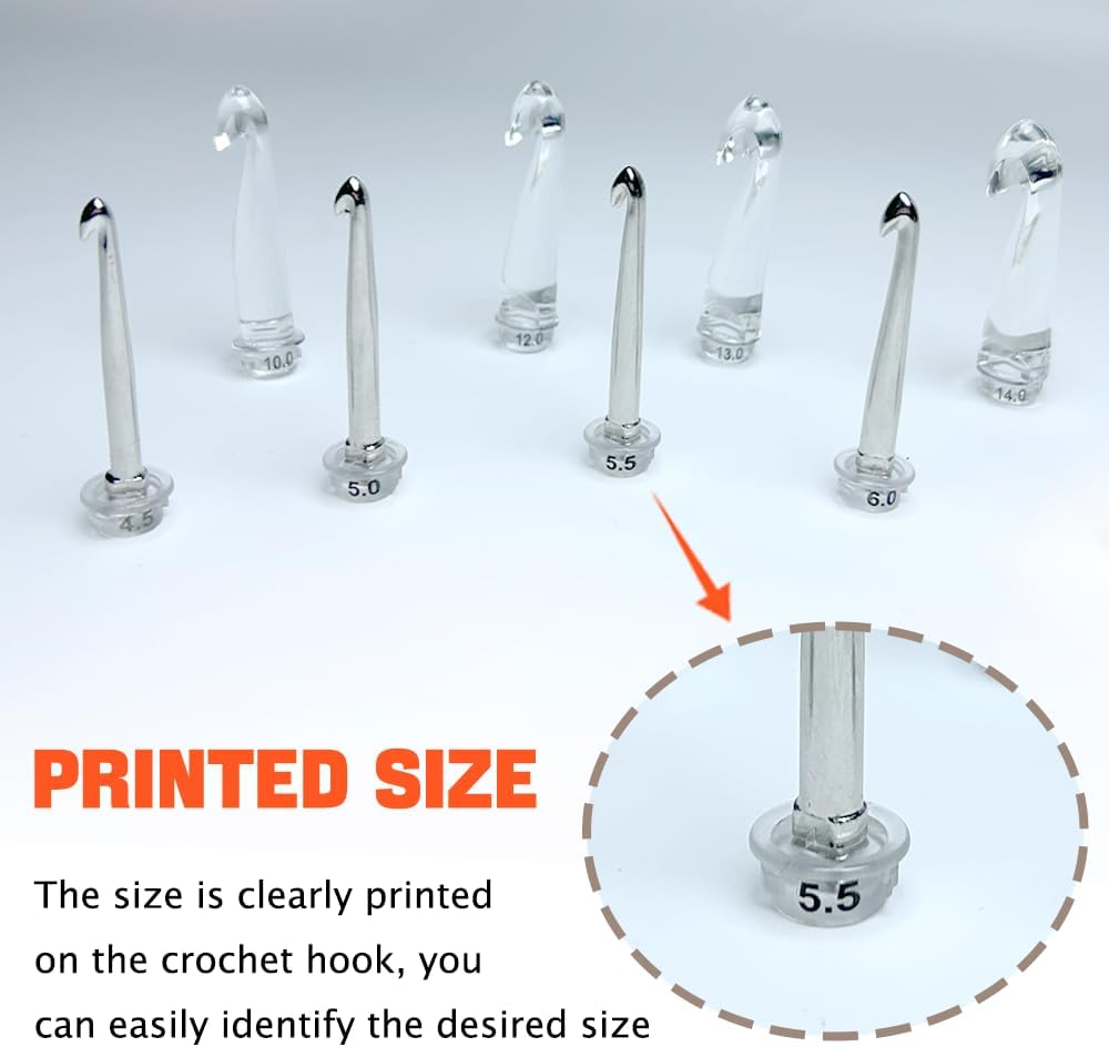 - 18 Sizes Interchangeable Metal Heads - The crochet hooks come with 18 metal sizes 2.0mm~14.0mm. The complete crochet hook set can meet your different crocheting projects.