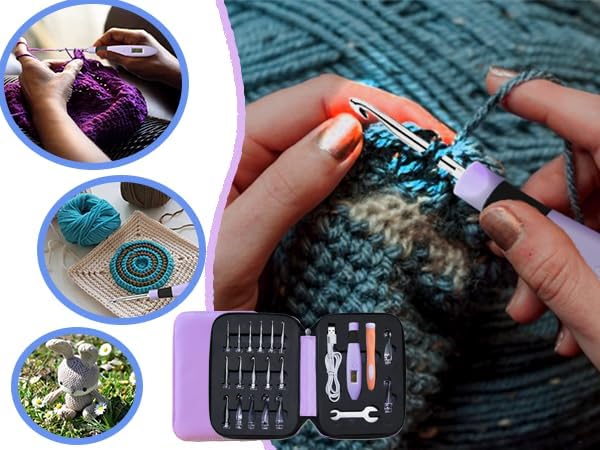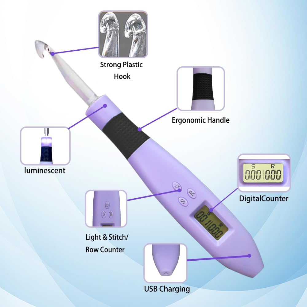 - Lighted & Counting Crochet Hooks - Crochet needle set has a built-in lithium battery and digital counter which can be recharged and reused. Battery is fully charged after 15 minutes and it lasts 7-9 hours.