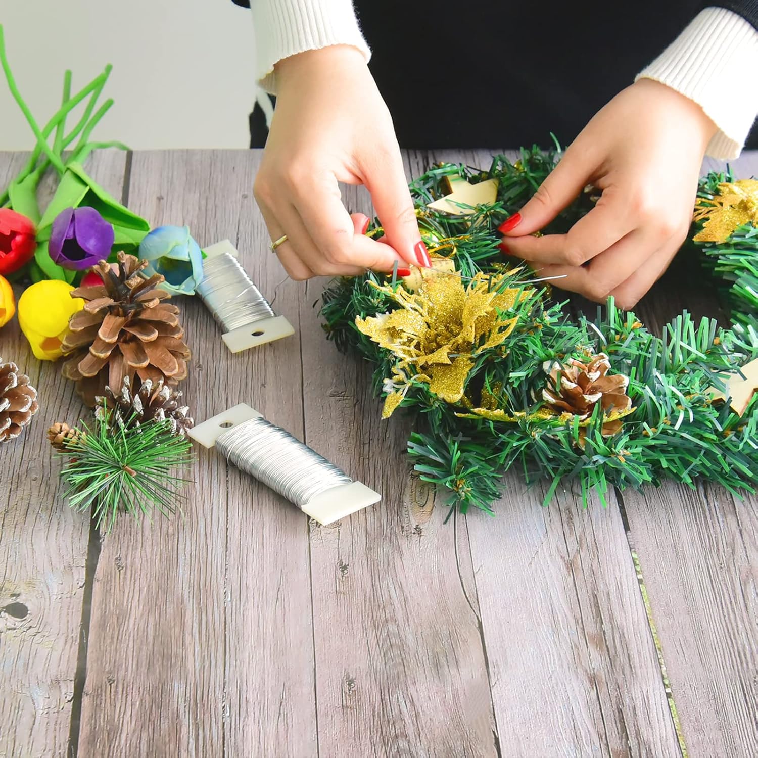 - Applications: Suitable for flower arrangement, DIY decoration, Christmas wreath, wreaths, Christmas tree, wedding bouquet, floral binding, plant crafts fixed