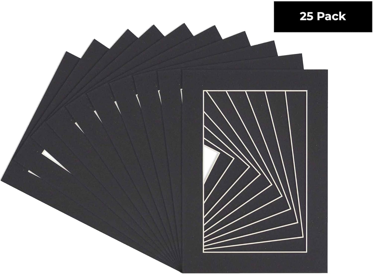6x8 Mat for 8x10 Frame - Precut Mat Board Acid-Free Black 6x8 Photo Matte Made to Fit a 8x10 Picture Frame, Premium Matboard for Family Photos, Show Kits, Art, Picture Framing, Pack of 25 Mats
