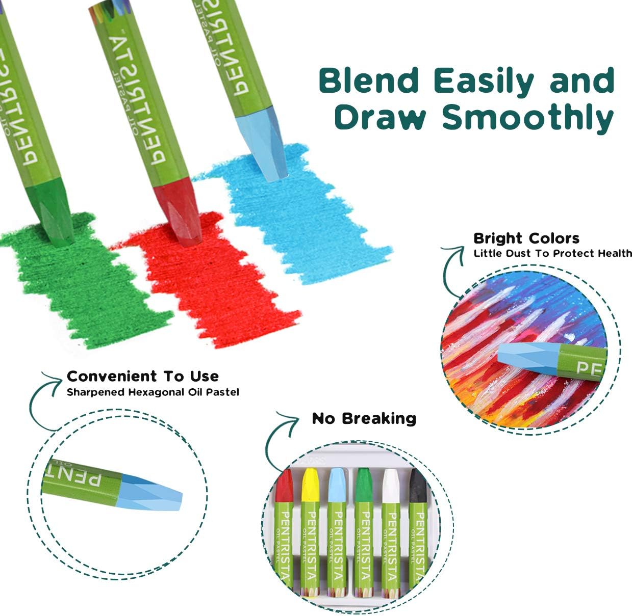 - 【Easy to Use for Artist of All Ages】 PENTRISTA Oil Pastels is hexagonal shape in Lage Size 73mm x Ø 13mm pastels, the Sharpener and Pastel Holder very easy to use,The oil pastels enable brilliant colors are easy to blend &pointed tips allow for detailed drawing.It's meets the needs of various painting skills.