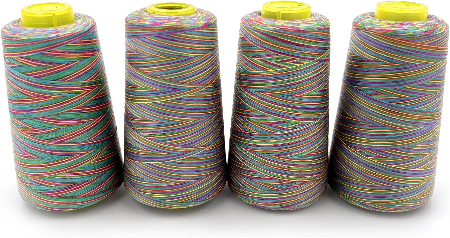 Tortoise 4 Cones of 3000 Yards Each Spool Thread for All Purpose, Serger, Overlock, Quilting, Sewing Machine - 40S/2 Rainbow-3 Polyester Thread