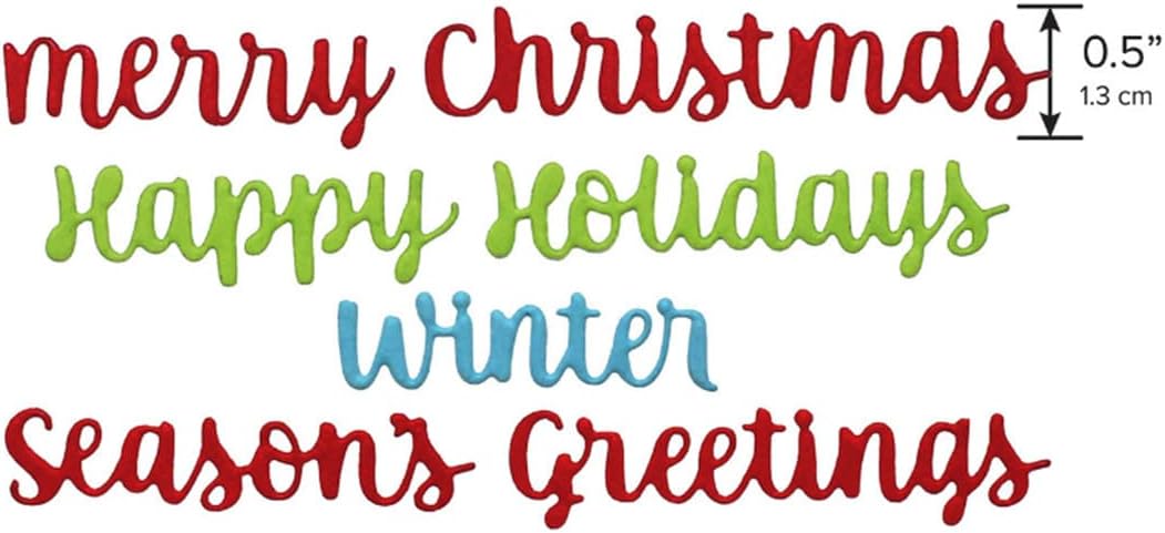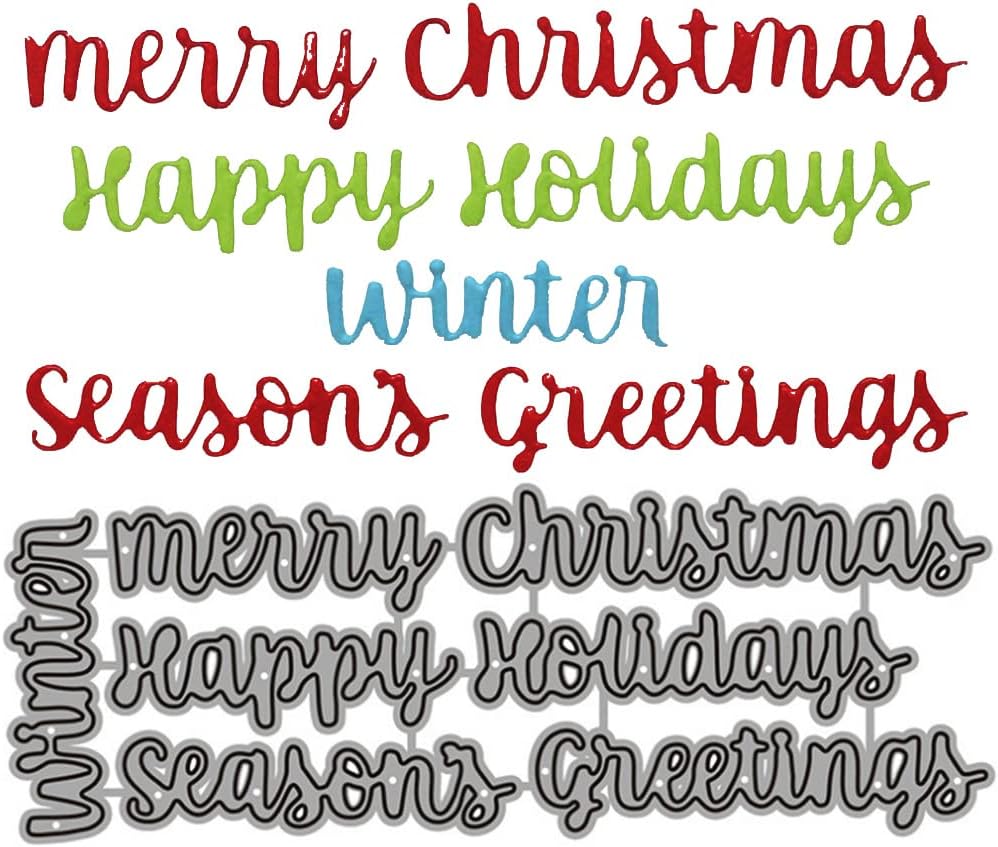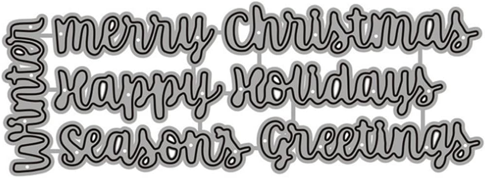 - Package Include: The cutting dies set contains 1 set merry christmas, happy holidays, winter, season greetings metal stencils words. Size: 139mm*51mm