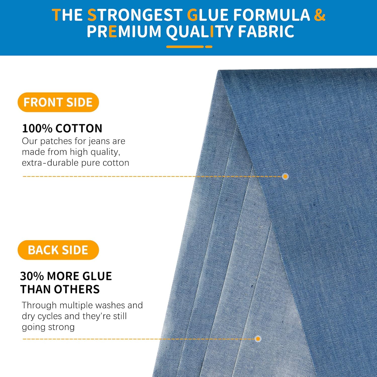 - 【Long Lasting and Durable】Our Jean Patches have more stronger adhesion, Iron on Jean Patches with more 30% glue than others, which makes it through multiple washes and dry cycles and they're still going strong, so you don't have to worry about the Denim Patches for Jeans will be coming off.