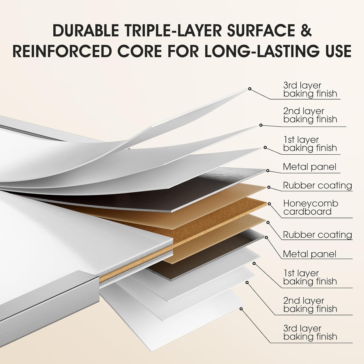 - Premium & Durable Design with Metal Frame: Crafted from premium materials and manufactured with the latest long-lasting stain-resistant technology and laminating process, our double-sided whiteboard offers a durable and enduring user experience. The aluminum white board stand holds the whiteboard firmly, whether standing on the desktop or hanging on the wall.