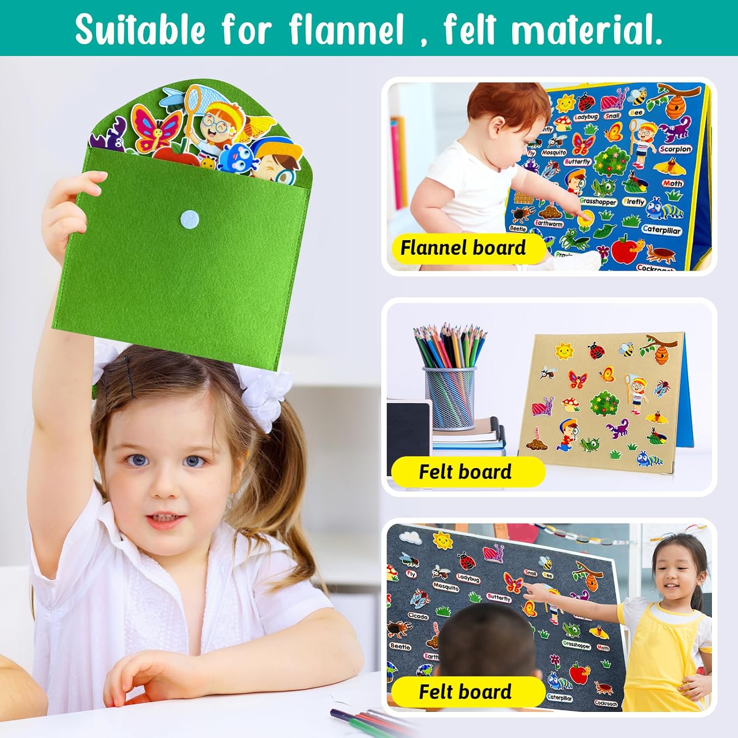 Felt Flannel Board Story Pieces for Toddlers Preschool,Kids Interactive Storytelling Teaching Play Kits for Flannel Board,with Words Felt Pieces(Insect Butterfly)