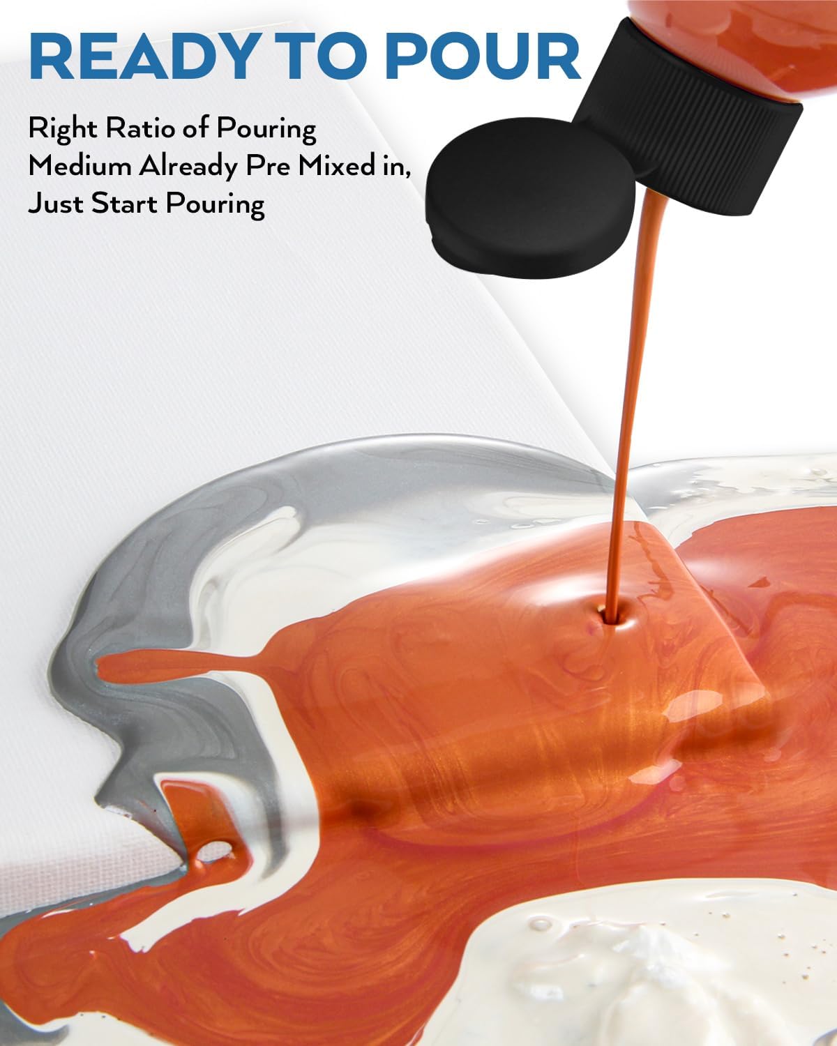 - Large Pour Acrylic Paint: This acrylic pouring paint kit comes with 8 colors metallic acrylic pour paint with large volume 8.45 oz / bottle. Ready to pour acrylic paint has the right ratio of pouring medium already mixed in, perfectly formulated to tilt, swipe, and puddle