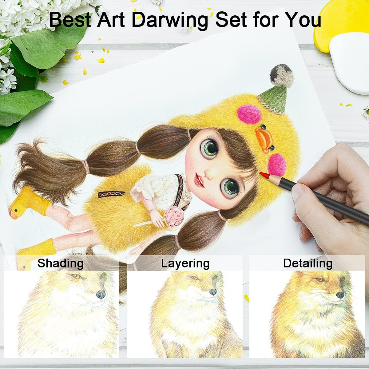 - 【High-quality Drawing Kit】We use imported cedar wood, each pencil has a unique wood texture, and our lead core diameter reaches 3.0mm, which is more durable and not easy to break than other ordinary lead cores, and the drawing lines are delicate smooth, the drawing set is made of safe and non-toxic material, has obtained SGS, MSDS and ASTM-D4236 international standard certification, non-toxic and acid-free, and is also very safe for children and students, you can use it with confidence;