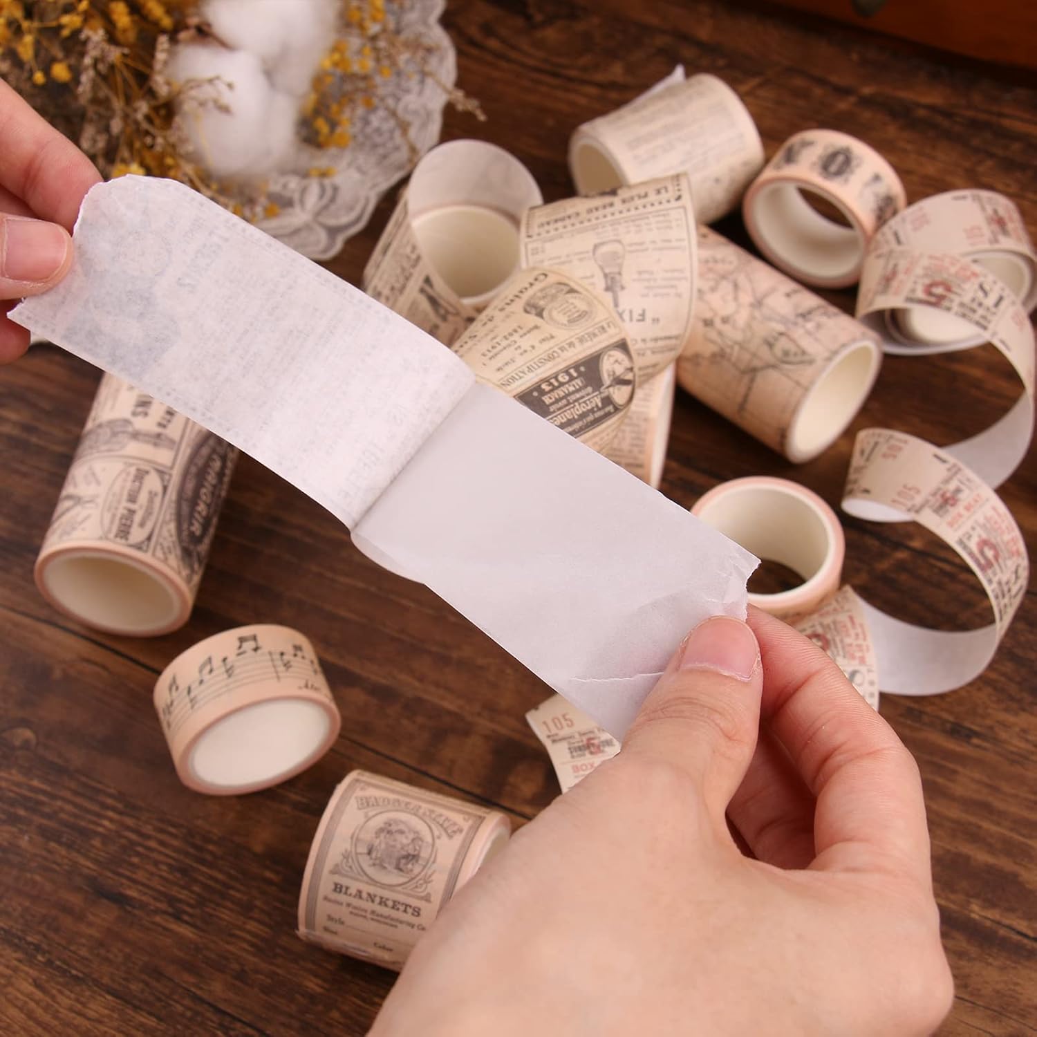 - 3. VINTAGE DESIGNS: This pack of journaling decorative tapes features retro patterns in pastel brown color and various sizes! Retro map, nostalgic newspaper, tickets, artistic alphabets, music note, lettre, manuscript, great for lighting up your art projects.