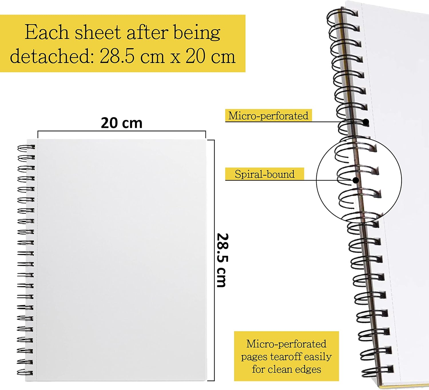 - SPIRAL BOUND WITH PERFORATED EDGES: This A4 drawing sketch book comes with a spiral bound, which gives you the ability to scroll through the sheets with ease. And with the perforated edge you can efficiently take out your drawings, sketches or paintings.