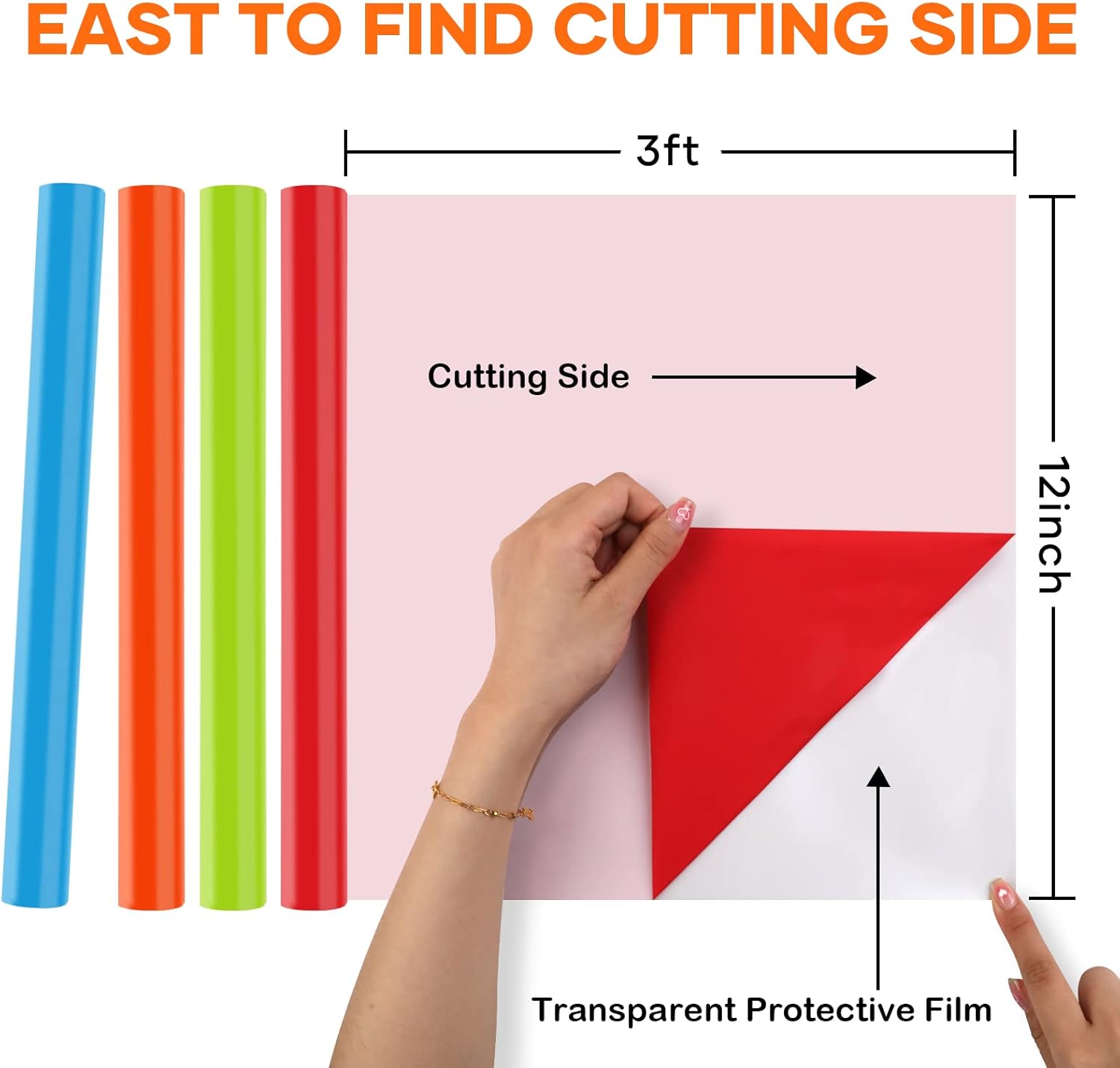 - 【GREAT FOR CUTTING & WEEDING & TRANSFER】This htv heat transfer vinyl bundle is made of SGS certified high-quality material, the right thickness and smoothness make it perform well in cutting and weeding. Also, our htv vinyl is temperature and pressure sensitive and can be easily heat transferred onto the desired surface