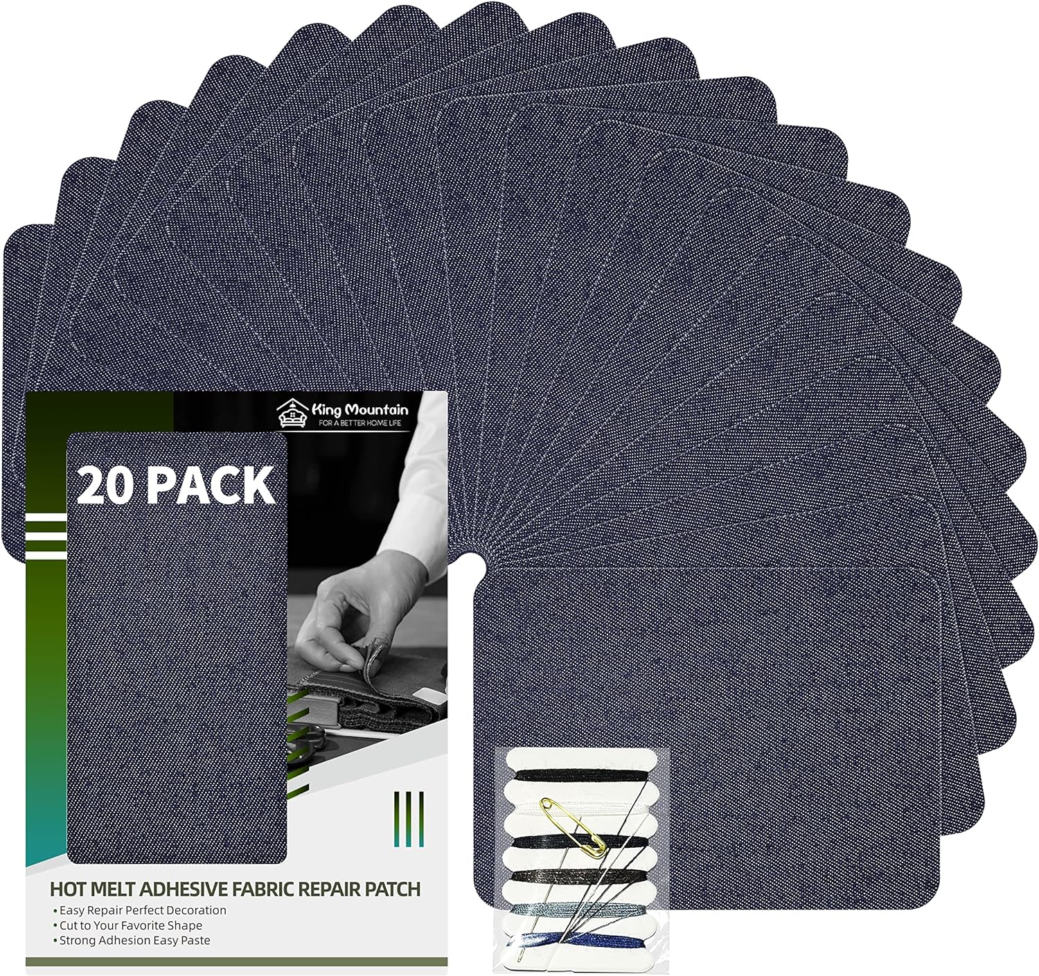 KING MOUNTAIN Iron-on Repair Patch 20 Pcs Pack,Denim Patches for Jeans Kit 3" by 4-1/4",100% Cotton Denim Iron-on Repair Patch, Jeans and Clothing Repair and Decoration Kit (Blue)