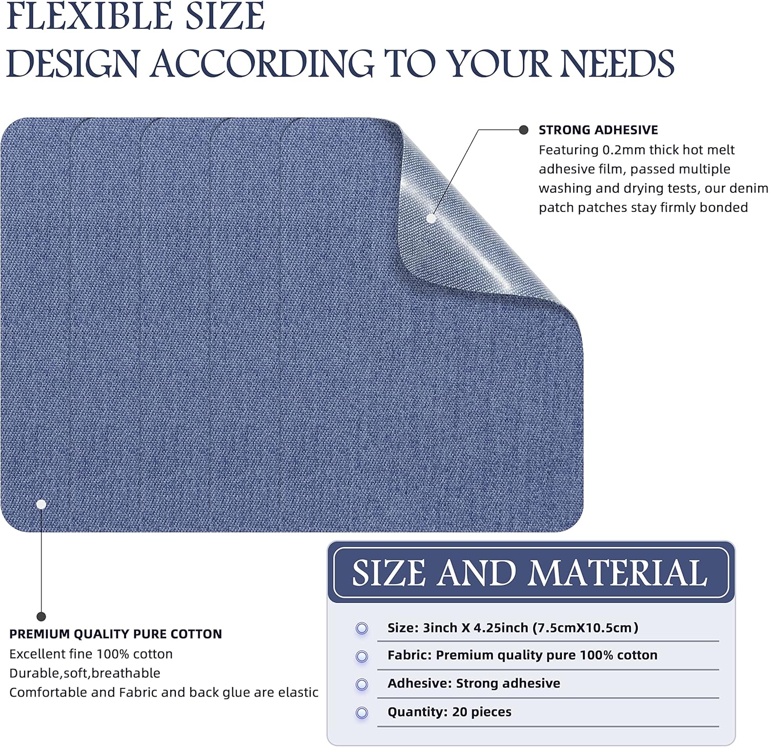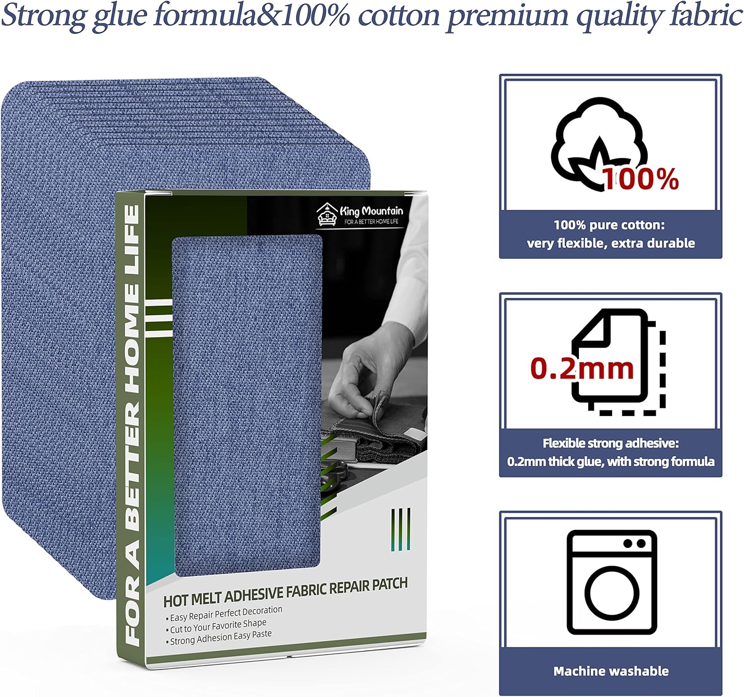 - Easier to Use: Our denim iron-on repair patches can repair or decorate your clothes in minutes, easy to apply in clothing repair, reinforcement, decoration. Open the package, remove the denim patch, stick it on the proper spot and iron at 330Β°F for one minute. (Can be used both inside and outside, no backing, no instructions for use)