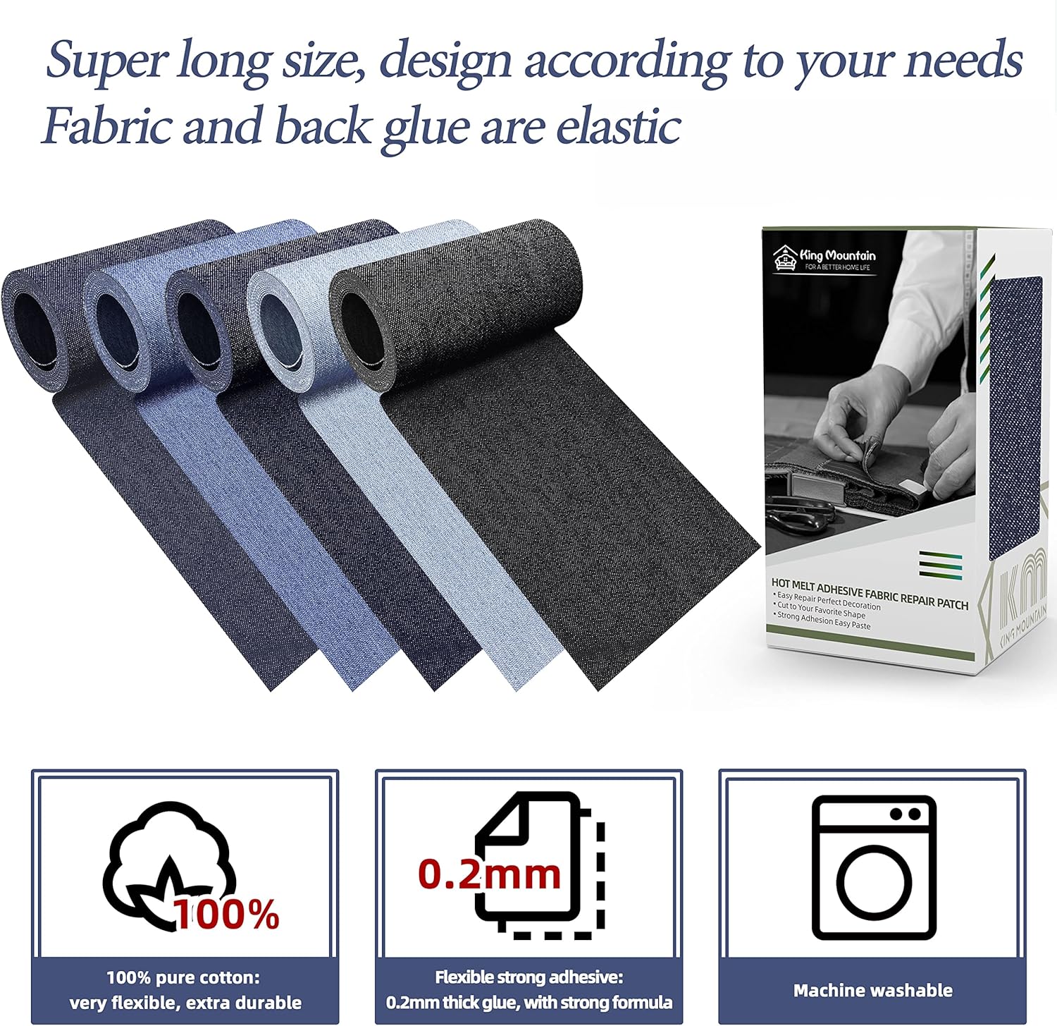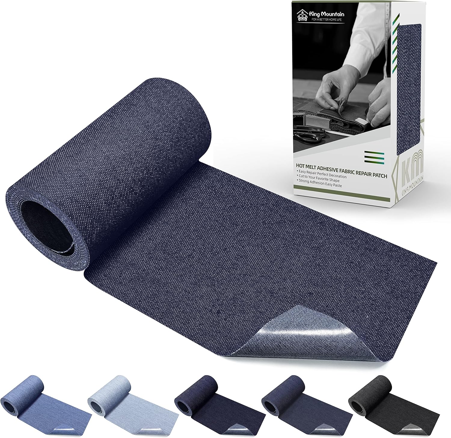 KING MOUNTAIN Iron-on Repair Patch,3"x60"100% Cotton Denim Iron-on Repair Patch, Jeans and Clothing Repair and Decoration Kit (Blue)