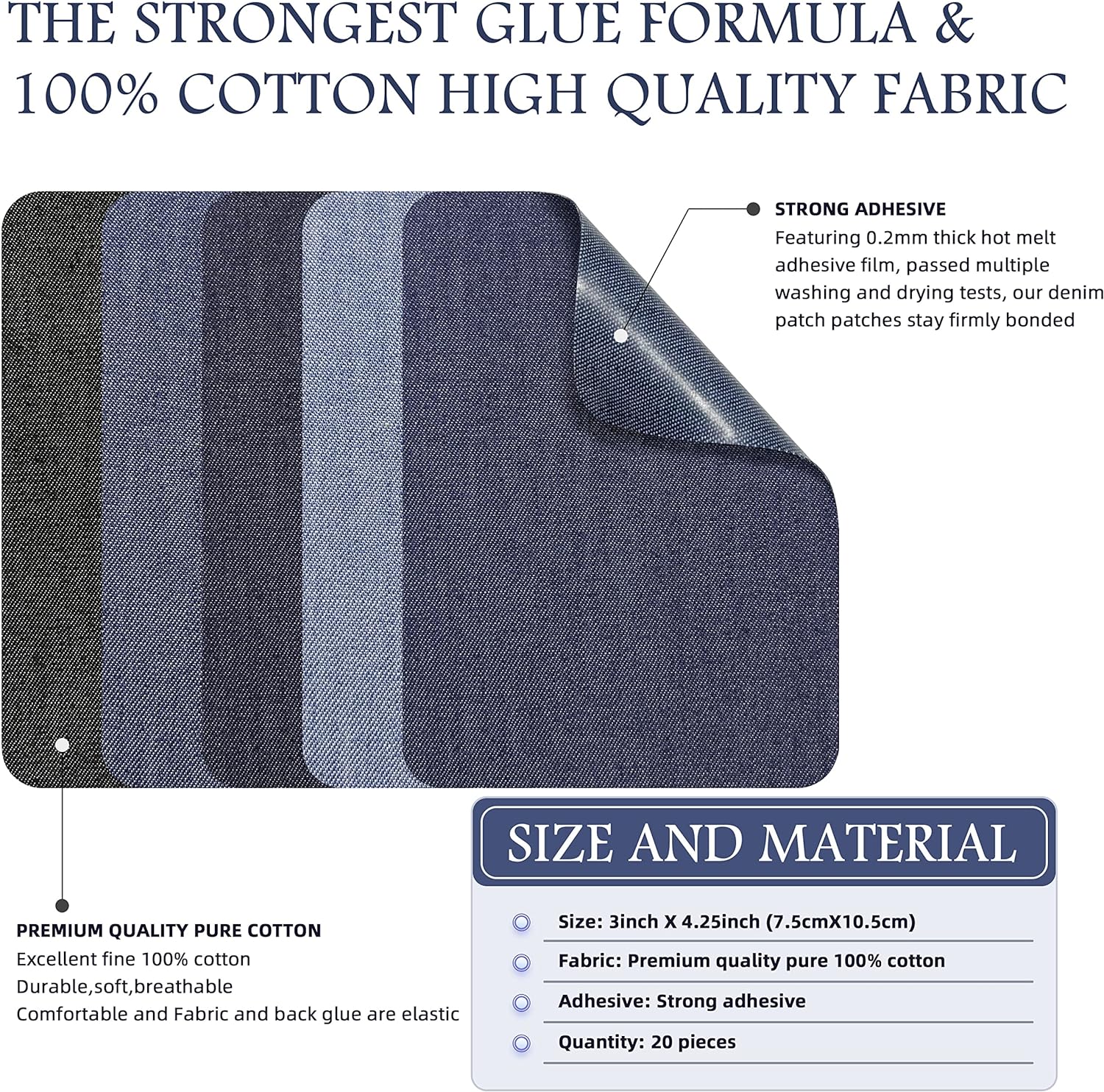 - Size and Color: Denim Iron-on Patch Size: 3 x 4-1/4 inches, it can perfectly hide large and small holes and add your own creative design. 5 different colored denim fabric patches to match perfectly or pick the color combination that best suits your denim fabric.