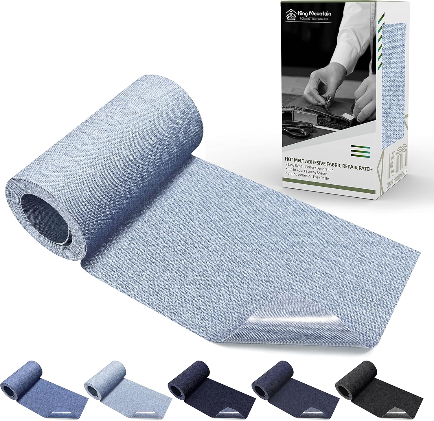 KING MOUNTAIN Iron-on Repair Patch,3"x60"100% Cotton Denim Iron-on Repair Patch, Jeans and Clothing Repair and Decoration Kit (Light Blue)