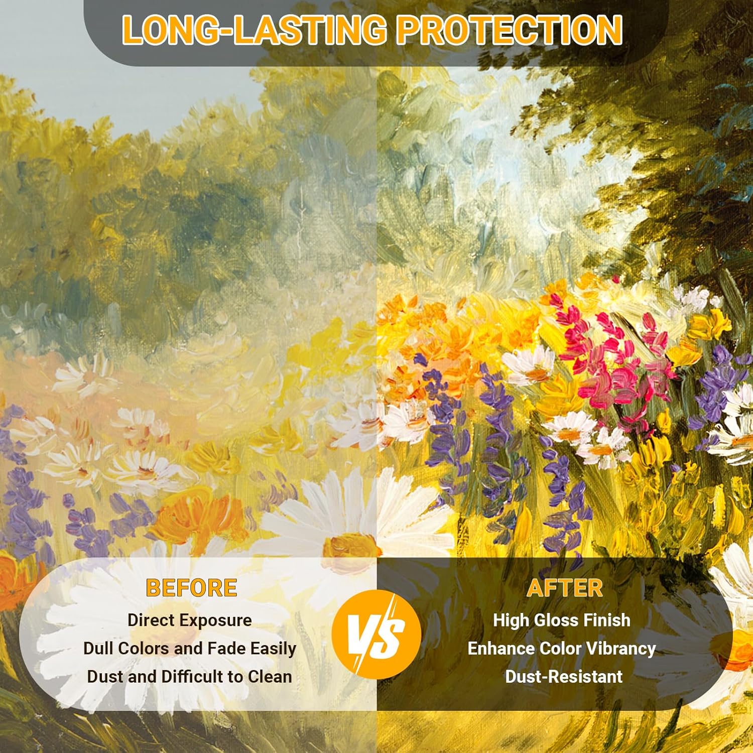 - Easy to Use: Just squeeze the painting sealer to your art paintings, and then spread the glue with silicone brush lightly and evenly all over the paintings, and finally waiting for the glue fully cured.Pay attention to apply evenly, a thin layer is enough. If you want to apply more layers, please apply the second layer after the first layer is dry, so as not to allow painting sealer to stack up