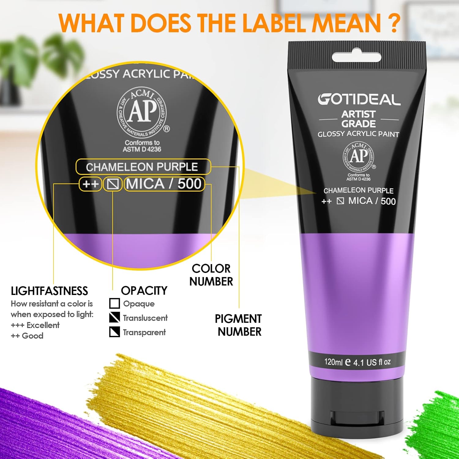 GOTIDEAL Iridescent Acrylic Paint Chameleon Purple Tubes(120ml, 4.1 oz) Non Toxic Non Fading,Rich Pigments for Painters, Adults & Kids, Ideal for Canvas Wood Clay Fabric Ceramic Craft Supplies