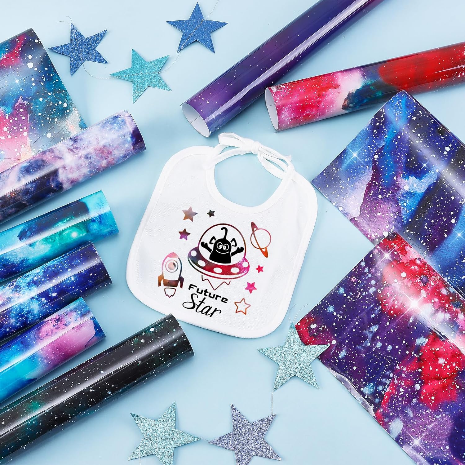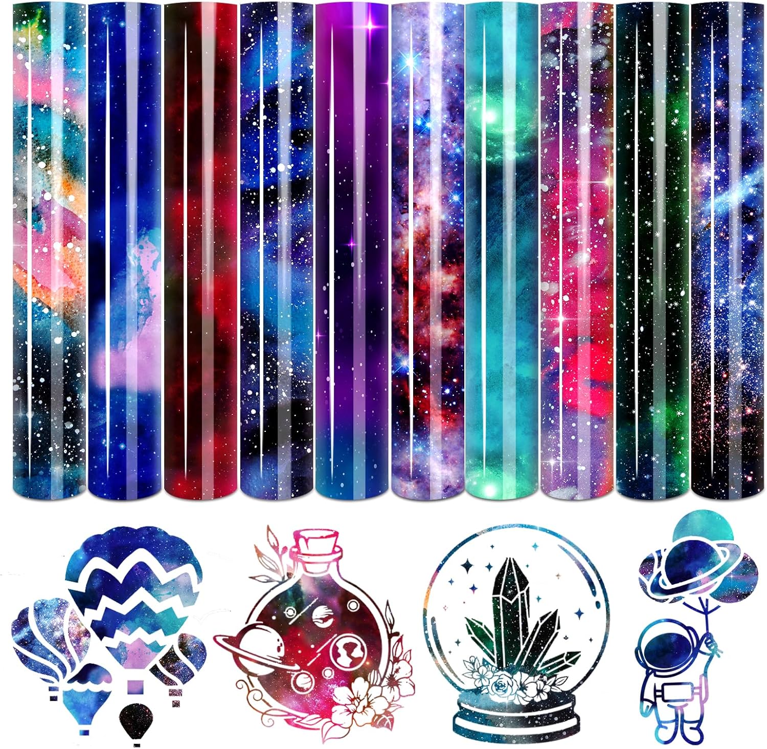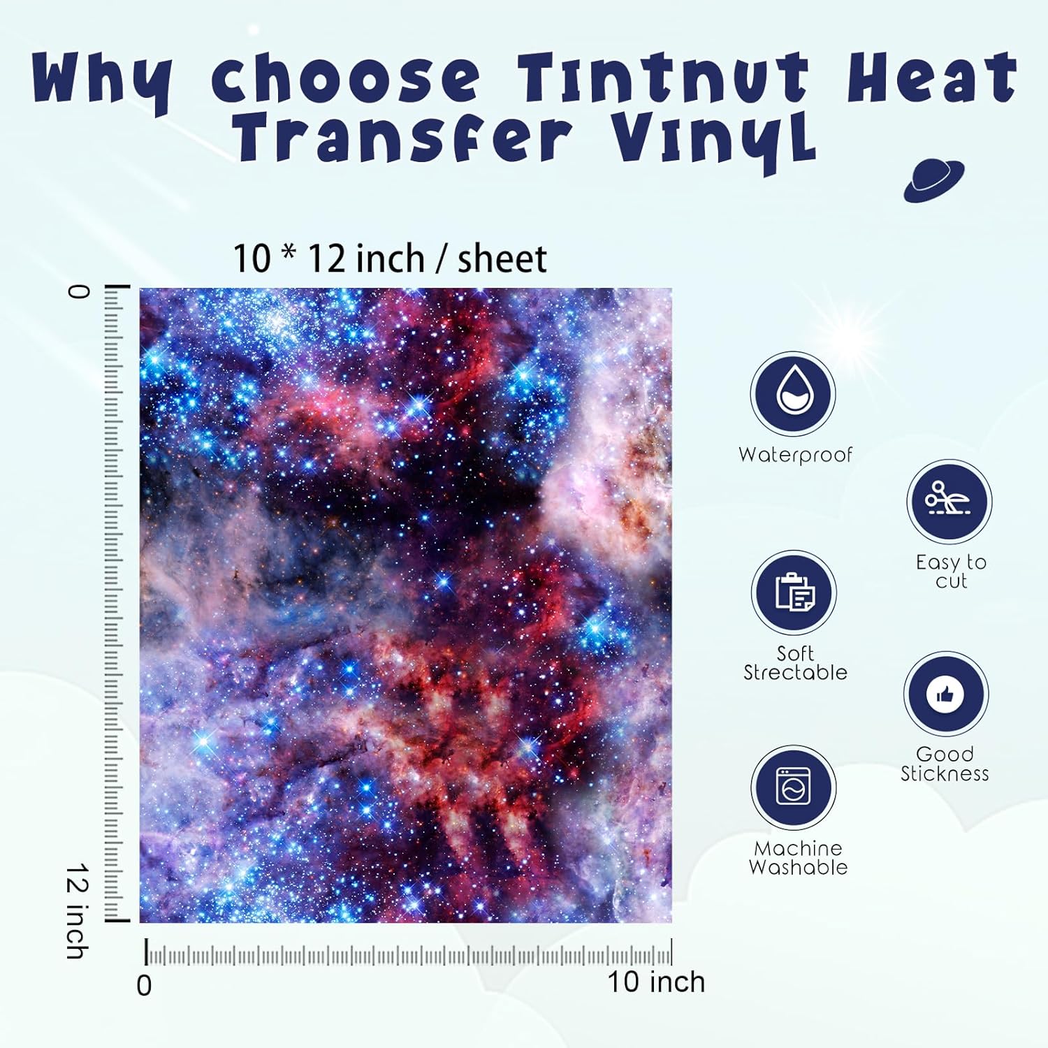 Tintnut Galaxy Heat Transfer Vinyl - 10 Sheets Bundle 10x12 Inch Stardust Starry Sky Background HTV Iron on Vinyl Watercolor Clouds Patterned for DIY T-Shirts Hats Coats Handbags Pillow Crafts