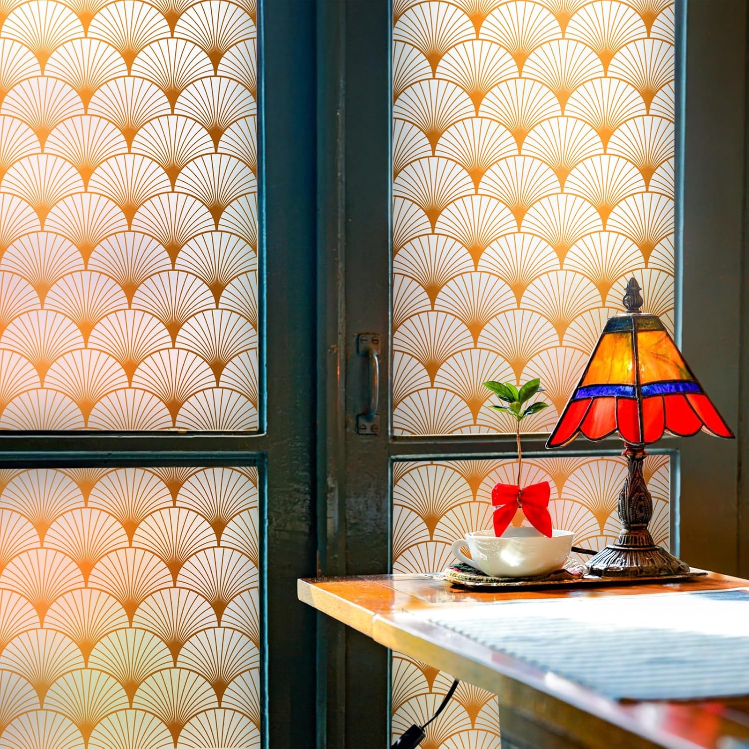 DKTIE Geometric Art Stained Glass Window Film Bathroom Window Privacy Film Frosted Glass Static Clings Non Adhesive with Installation Tools, Modern Home Improvement Style (S117, 35.4'' x 78.7'')