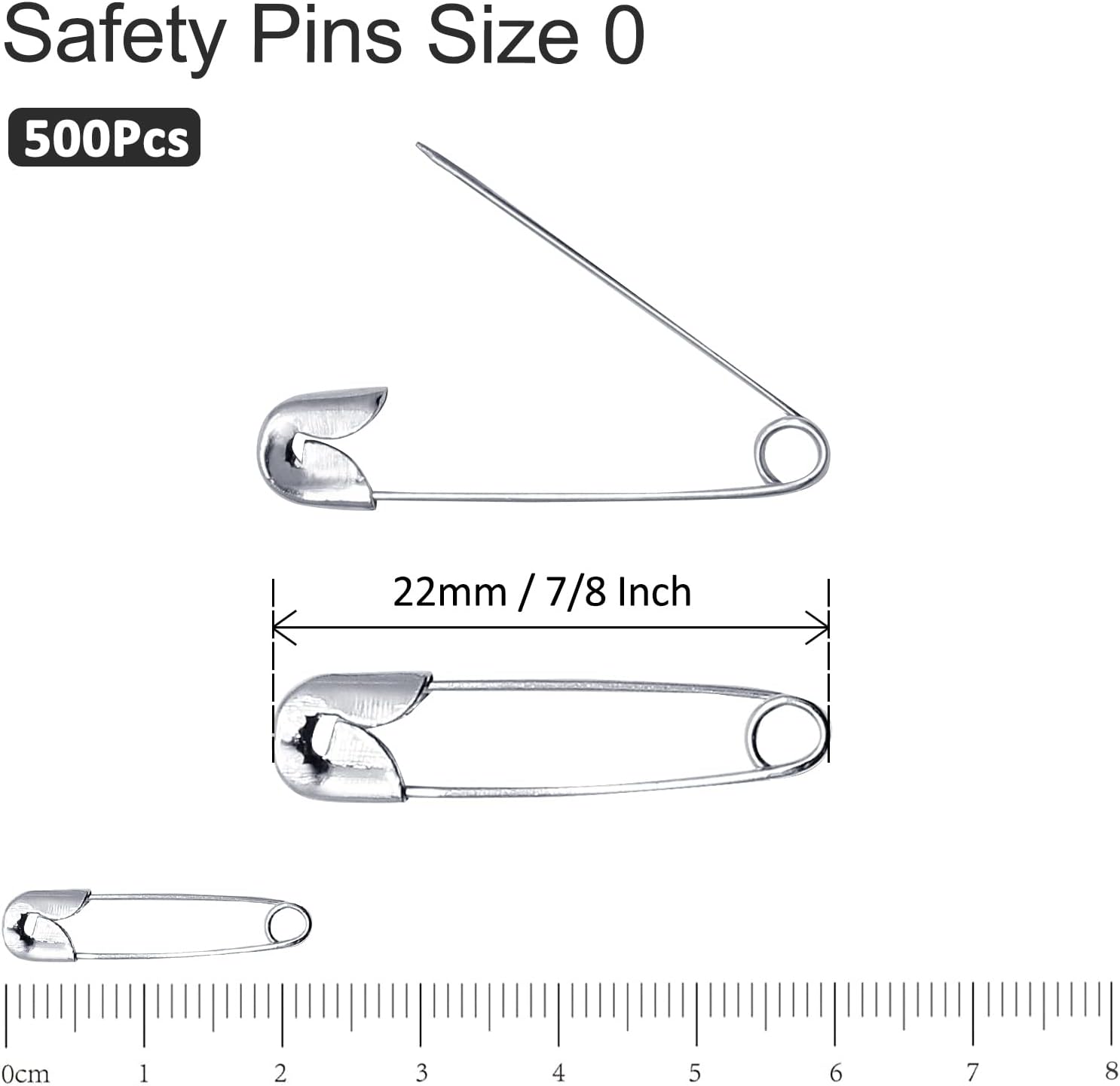500 PCS 22mm / 7/8 Inch Safety Pins Heavy Duty Quilting Pins, Small Safety Pins Size 0, Silver Metal Sewing Pins, Mini Safety Pins for DIY Crafts Jewelry Making Baby Clothing (Nickel Plated)