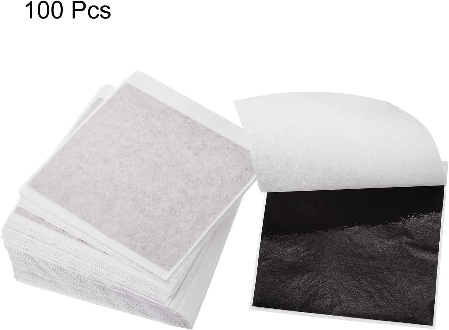 MECCANIXITY Gold Leaf Foil Sheet, Black Leaf Papers, 3.3 x 3.1inch for Art Decoration, Sculptures, Painting, Pack of 100
