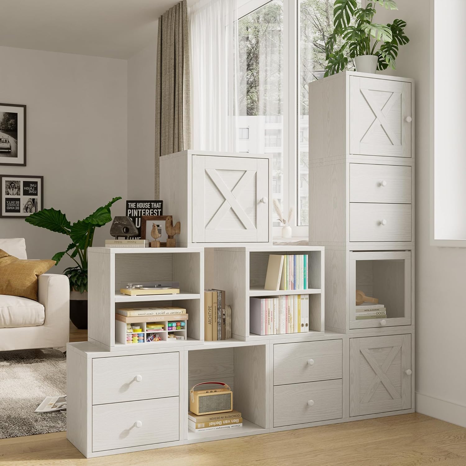 FUSUNBAO Magic DIY Cube Storage Organizer Stackable Cubes for Home Books Clothes Toy-Modular Cubby Storage System-Office Cubical-Bookcase Closet (Pure White-Washed, Door Cube)