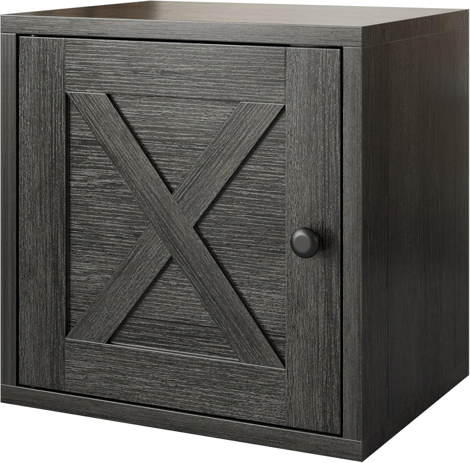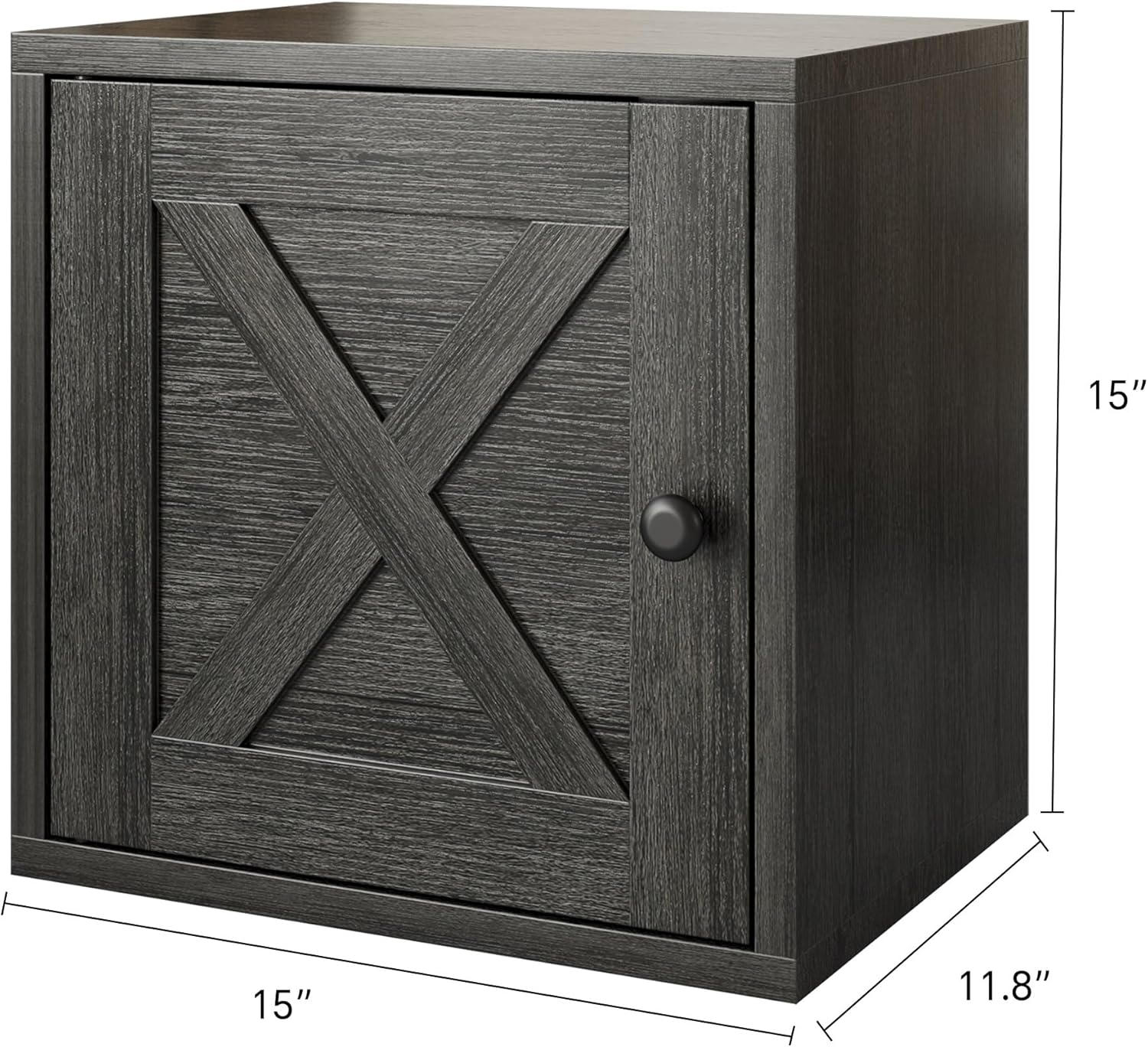 FUSUNBAO Magic DIY Cube Storage Organizer Stackable Cubes for Home Books Clothes Toy-Modular Cubby Storage System-Office Cubical-Bookcase Closet (French Oak,Door Cube)