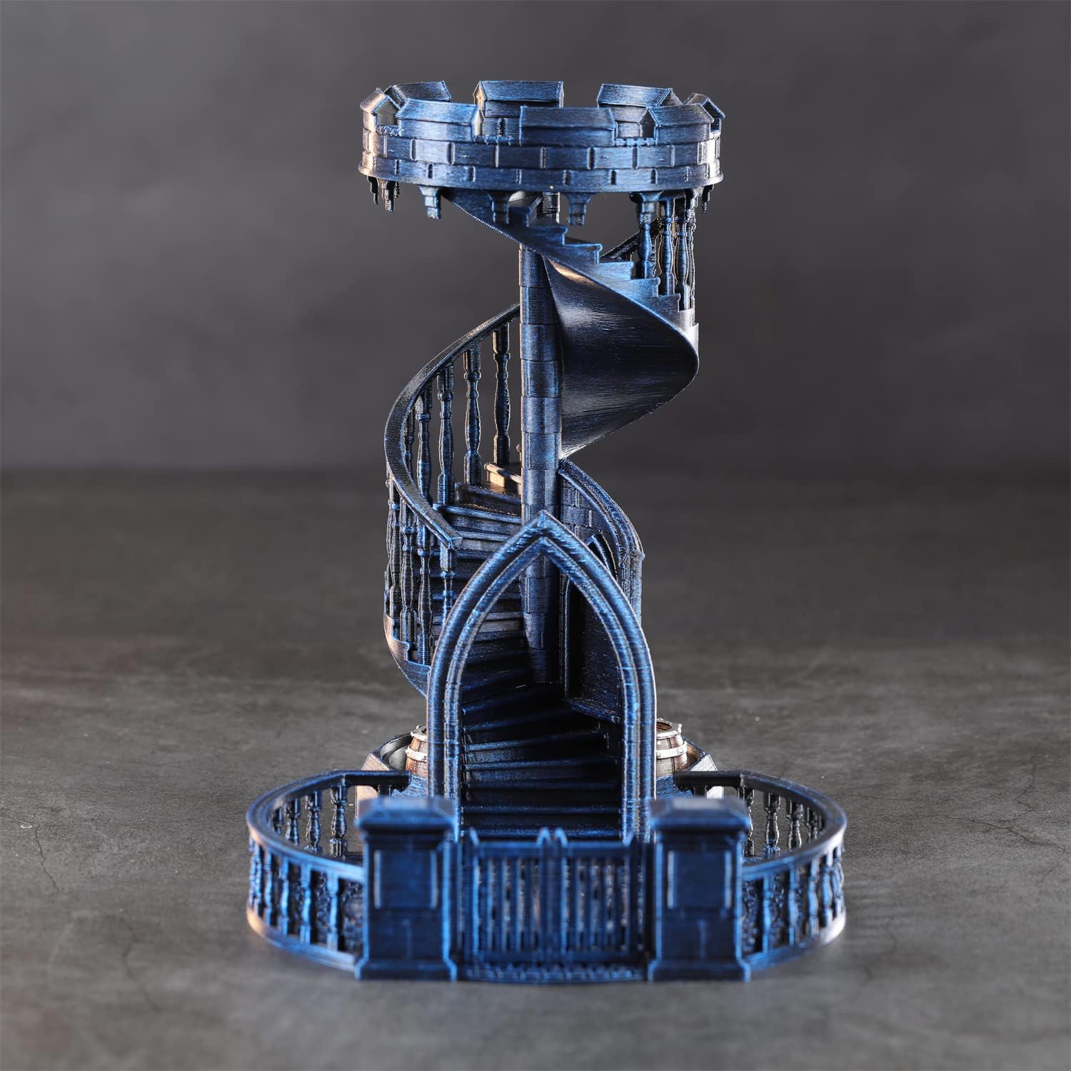 AUSPDICE Dice Rolling Tower and Tray with Spiral Stairs Perfect for Board Game, D&D Dungeons and Dragons, RPG and Pathfinder Role Playing Games (Antique Blue Color)