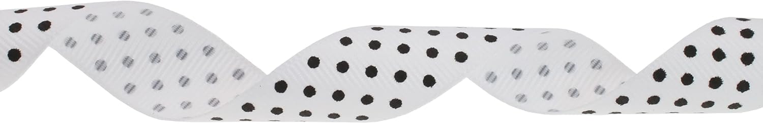 Polka Dot Grosgrain Ribbon 25 Yard Each Roll 100% Polyester (3/4", White)