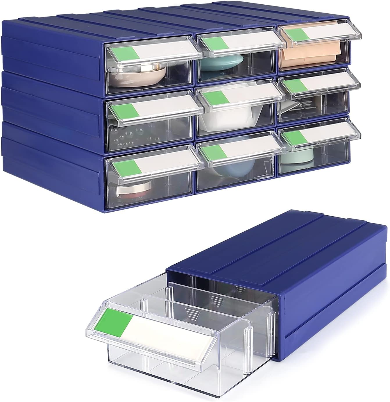 9pcs Sewing Craft Storage Box Hardware Craft Drawer Storage Cabinet Plastic Stacking Shelf With Divider Tag Cards Multifunctional Rack For Home Office Small Items (9, Blue)