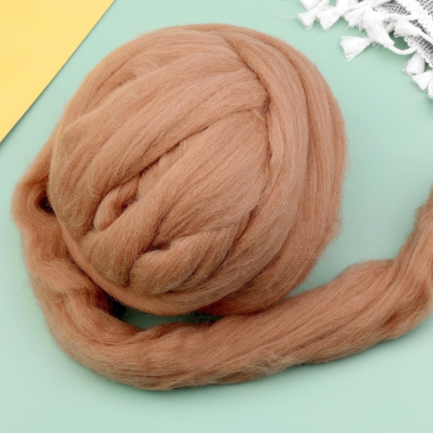 Wool Roving Bulk - 8.82oz Super Wool Chunky Yarn, Wool Roving Top for Needle Felting, Soft Felting Wool Supplies for Hand Spinning, Felting, Blending, Weaving and DIY Craft (Coffee Brown)