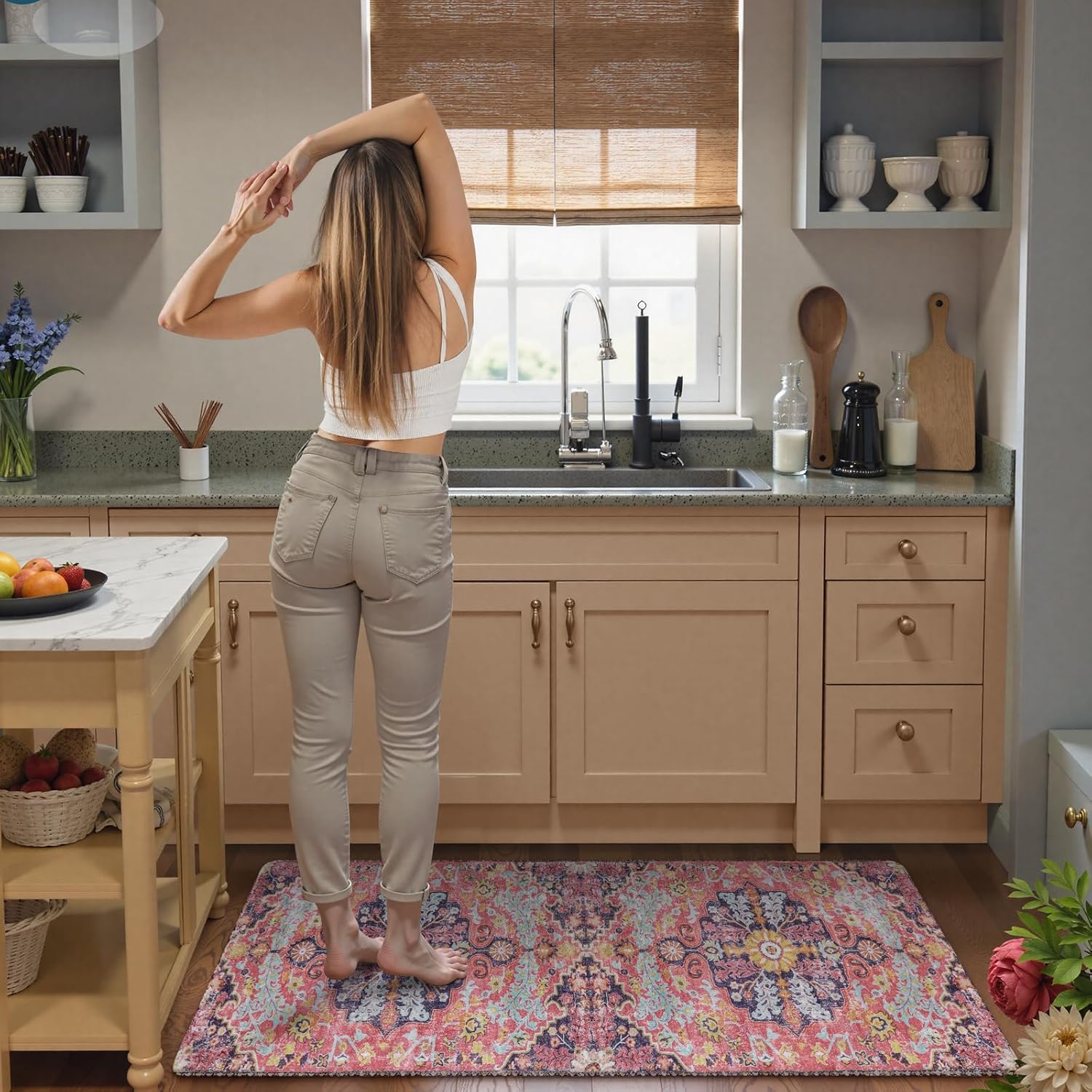 - [Soft & Skin-Friendly] - Our kitchen runner rug made of faux wool, if you walking barefoot on the carpet, you will have the feeling of stepping on clouds! All of our washable rugs have passed Environmental Certification. You can be sure that our area rugs are ECO-friendly and skin-friendly